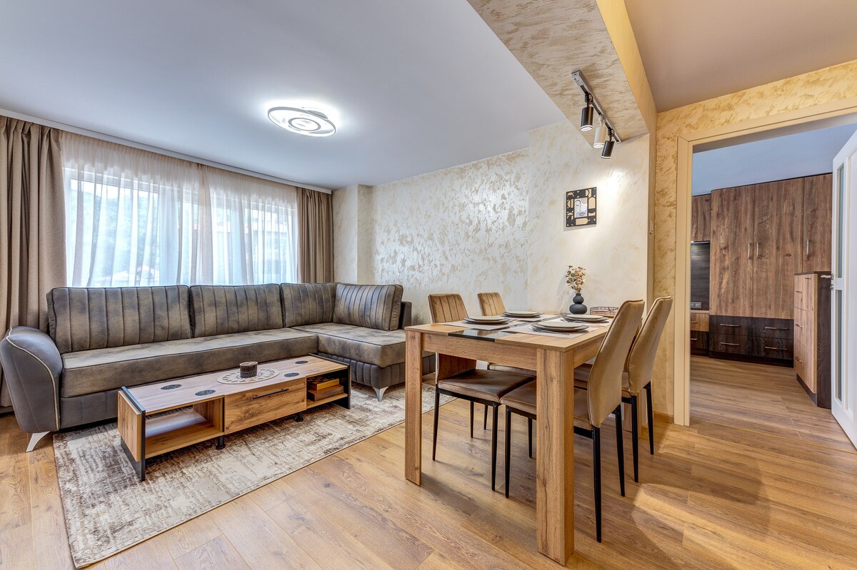 Pergi ke pergunungan di apartmen 1 bilik tidur yang selesa ini di Pamporovo, Bulgaria! Sesuai untuk pasangan atau keluarga kecil, apartmen ini menawarkan pemandangan gunung yang menakjubkan dan dilengkapi dengan semua kemudahan penting untuk penginapan yang selesa, termasuk dapur, pendingin hawa dan Wi-Fi. Nikmati kemudahan lif dan tempat letak kereta bawah tanah. Terokai persekitaran yang indah dengan laluan mendaki dan cerun ski berhampiran. Ia adalah tempat yang ideal untuk percutian santai atau perjalanan ski yang mencabar di
