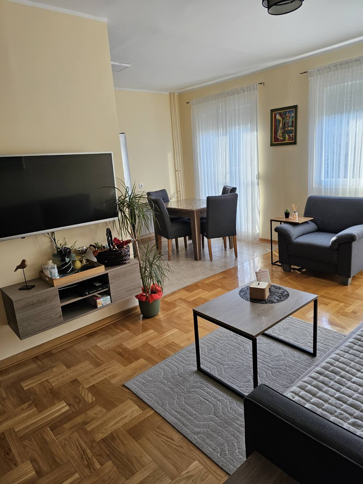 * Apartmen moden baru seluas 66 meter persegi kami terbuka kepada tetamu dan boleh menampung sehingga 5 orang. * Termasuk ruang letak kereta percuma. * Apartmen ini berperabot lengkap dengan perabot baharu dan kemudahan moden. * Ia mempunyai tiga balkoni - setiap bilik mempunyai akses kepada satu, sementara masih menawarkan privasi penuh, kerana apartmen ini terletak di tingkat tiga. >>>>>Perhatian untuk perokok: Ini adalah apartmen bebas rokok, tetapi anda dialu-alukan untuk menggunakan balkoni untuk merokok.