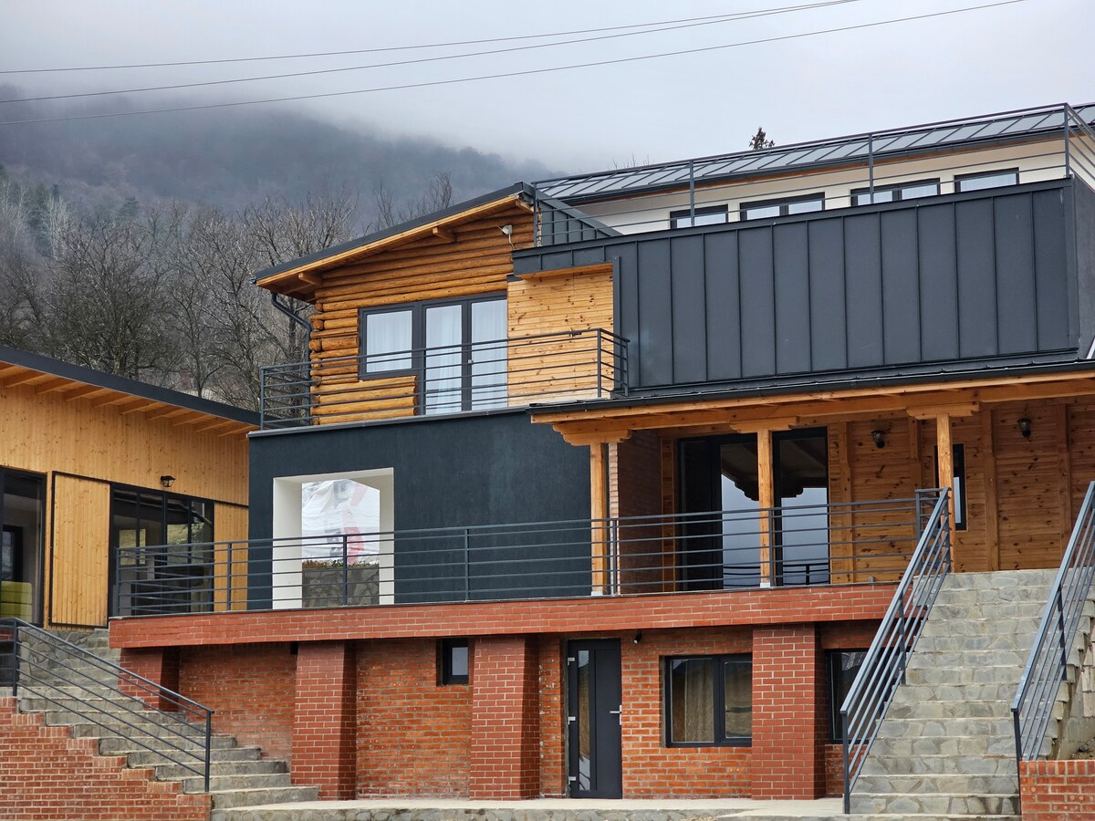 Un resort de case in forma de A situat in frumoasa zona montana Gresu din judetul Vrancea reprezinta oaza de liniste si relaxare, departe de stresul cotidian. Acest complex unic este compus din 6 case moderne si confortabile, construite in stil traditional montan ce se integreaza in peisajul natural uimitor. Fiecare casa ofera un interior amenajat cu gust, echipat cu facilitati moderne, si o terasa panoramica pentru a savura privelistea spectaculoasa a muntilor Vrancei.