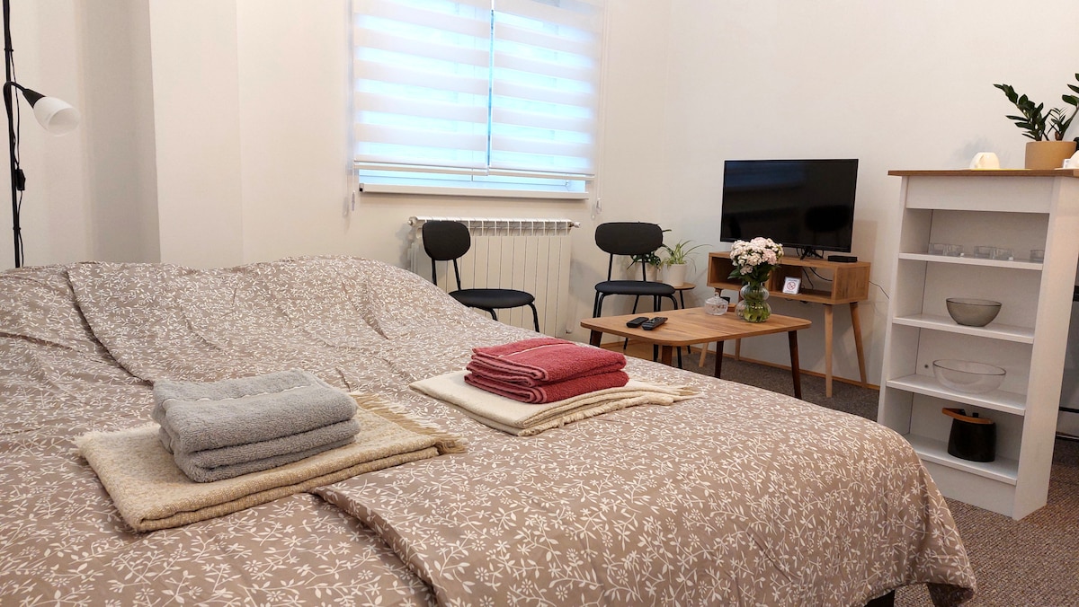 Matlamat kami adalah untuk mencipta ruang di mana tetamu boleh berehat dan menikmati masa mereka semasa menginap. Itulah sebabnya studio ini dihias dengan gaya minimalis tetapi mesra dan praktikal, dengan semua kemudahan asas yang diperlukan untuk penginapan yang selesa.
