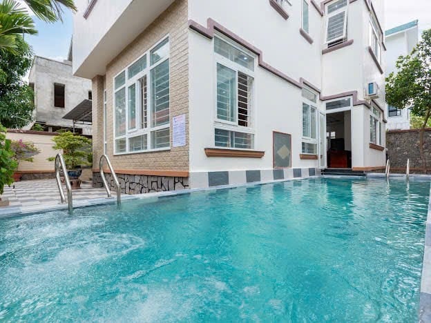 * Lokasi: Terletak di tengah-tengah bandar pantai Vung Tau, berjalan kaki 50 meter ke barisan hadapan pantai. Di sebelah stesen Kereta Kabel, berhampiran kedai makan Ganh Hao, kafe pemandangan laut di sepanjang jalan Tran Phu. + Kapasiti: 15 - 30 tetamu. + Kawasan kampus: 350m2. + Kawasan kolam renang: 3mx7m. + Skala 9 bilik tidur 11 katil 11WC. + Perabot moden baharu, dengan lif. + Dapur yang serba lengkap dengan peralatan dapur. ** TERUTAMANYA dengan teres yang besar dan lapang untuk memenuhi keperluan mengatur BBQ dengan pemandangan laut.
