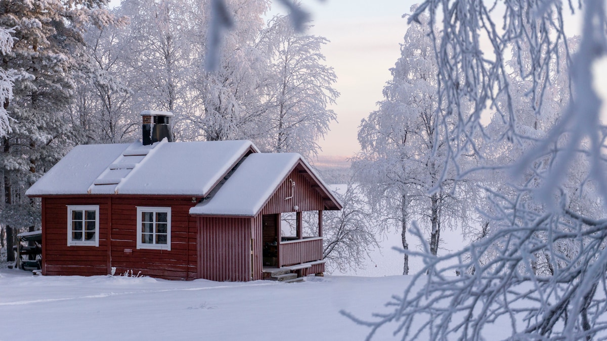 Cosy log cabin in Ivalojoki river with all amenities needed for a comfortable and adventurous stay: please read the full description before booking! The cabin lies on an island, the last part needs to be walked over the ice (safe from mid-December till April) or rowed with our small rowing boat (included). A cabin for those who want to cocoon surrounded by nature, gaze at northern lights undisturbedly, discover untouched snowy forests on snowshoes (included) and sleep in absolute silence.