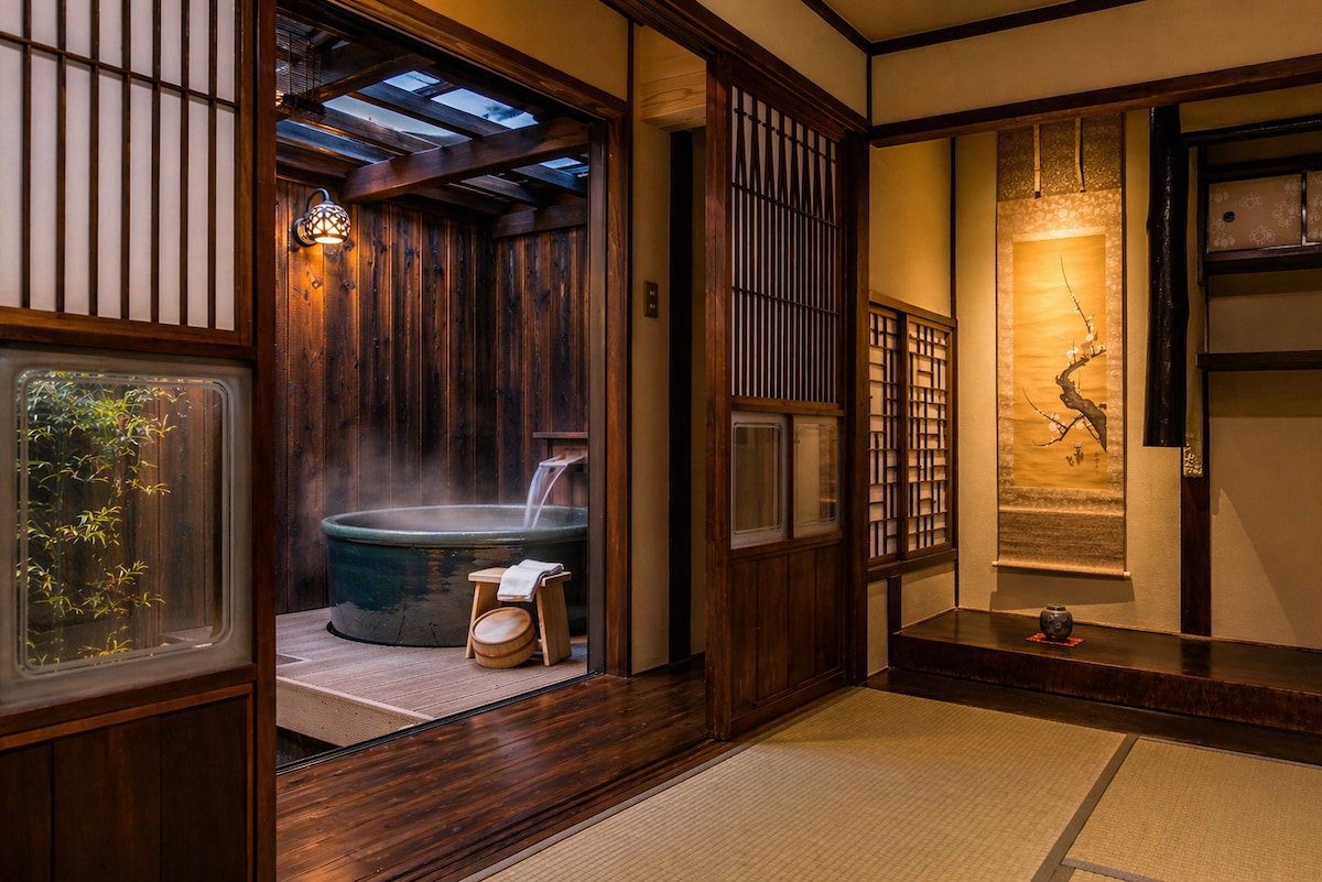 Kyoto Machiya dengan Tab Mandi Terbuka dan Taman Shigaraki
