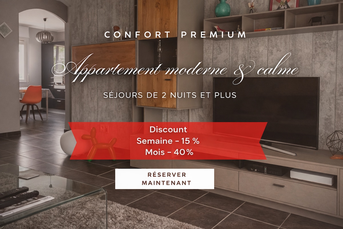 Nikmati penginapan menawan dengan lokasi yang ideal, berhampiran jalan pejalan kaki, anda boleh meletak kereta di sana dengan mudah. Sesuai untuk profil profesional. -Netflix tersedia, TV bersambung, WiFi berkelajuan tinggi - Katil saiz "Queen" 160*200 -Bar/kawasan kerja - Dapur berasingan dan dilengkapi: ketuhar, ketuhar gelombang mikro, peti sejuk, pembuat kopi, cerek-Mesin basuh, almari pakaian, kabinet kasut -Cadar katil, tuala, pengering rambut, besi, -Peribadi dan tempat letak kereta percuma