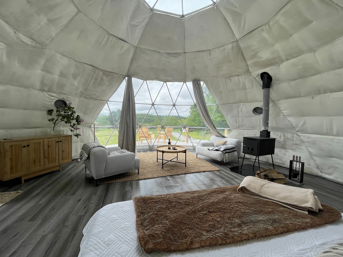 Kubah geodesik kami terletak di atas 10 ekar harta tanah kami. Secara keseluruhannya, ladang musim bunga ialah 28 ekar , anda boleh mengakses kolam bulat untuk berkayak , memancing atau berenang. Anda juga boleh melawat Alpacas , arnab , babi , biri-biri dan kawasan rehat baru kami. Kemudahan bilik mandi adalah peribadi untuk setiap kubah, tiada perkongsian. Anda perlu berjalan kaki ke rumah mandi . WiFi poket boleh disediakan jika diminta . Ikuti kami di IG di Comespringfarm .
