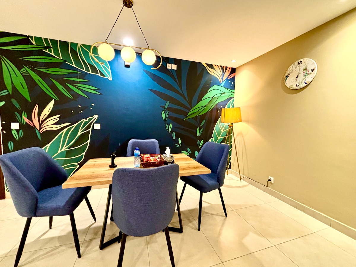 Penthouse Orbit 1 BHK kami di DHA Fasa 5 adalah tempat yang bergaya dan menarik. Fikirkan: dinding bulan yang bersinar untuk swafoto lewat malam dan karya seni bertindan dolar yang menjerit "tenaga watak utama" Bangun pagi untuk menikmati pemandangan taman dari buaian balkoni peribadi anda, nikmati kegemaran anda di TV Pintar 4K 50", atau masak sesuatu yang estetik di dapur berjenama yang sarat. Hiasan dalaman? Abstrak, bergaya, dan dibuat untuk suapan. Selain itu, anda berada betul-betul di sebelah tempat makan paling popular di Lahore.
