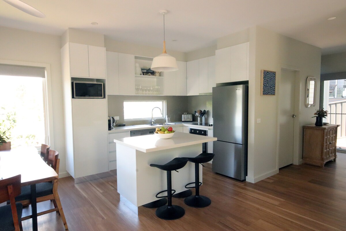 Selamat datang ke Altura Apartment, ruang moden yang lengkap di pusat bandar Bright. Sesuai untuk pasangan yang ingin meneroka atau berehat. Apartmen ini termasuk bilik tidur yang luas, bilik mandi berasingan, dan dapur penuh dengan ruang makan. Kedudukannya yang tinggi menawarkan pemandangan matahari terbenam di atas Bright dan pergunungan. Berjalan kaki lima minit merentasi jambatan pejalan kaki Sungai Ovens membawa anda ke tempat makan, wain dan membeli-belah butik di Bright. Tetamu menikmati kemudahan masuk persendirian, tempat letak kereta dan akses halaman.
