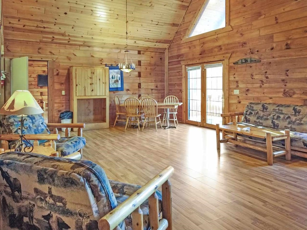 Kabin log milik persendirian yang berperabot lengkap berhampiran Jellystone Campground dan Three Bears Resort di Warrens yang indah, WI. (Pas tidak termasuk.) Berdekatan dengan akses berhampiran ke laluan ATV/kereta salji sepanjang 100 batu! Kereta golf tersedia untuk disewa, first come, first serve! Unit bersebelahan tersedia untuk parti yang lebih besar dengan keupayaan untuk menempatkan hingga 62 orang! (Cari unit 305, 311, 718, & 901,903,905,907,909 di AirBNB.)