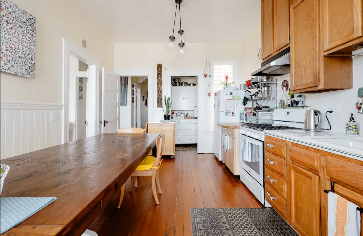 Tinggal seperti warga tempatan di kejiranan Kegemaran SF! Bilik tidur persendirian yang selesa dalam gaya Edwardian 2 bilik tidur kami yang cerah + luas, 1+1 bilik mandi/bilik mandi, dapur makan besar, bilik dobi, teres tertutup kaca + bilik tamu. Terletak di tengah-tengah jalan yang sunyi. Pemandangan teluk & bandar yang menakjubkan di setiap bilik, perabot hip & hiasan dunia yang bergaya. Ini ialah situasi yang sesuai untuk seseorang yang sukakan privasi dan ketenangan. Kami mempunyai jiran yang sensitif-dan Dilarang mengadakan parti yang ketat - Dilarang merokok - Tiada polisi tetamu
