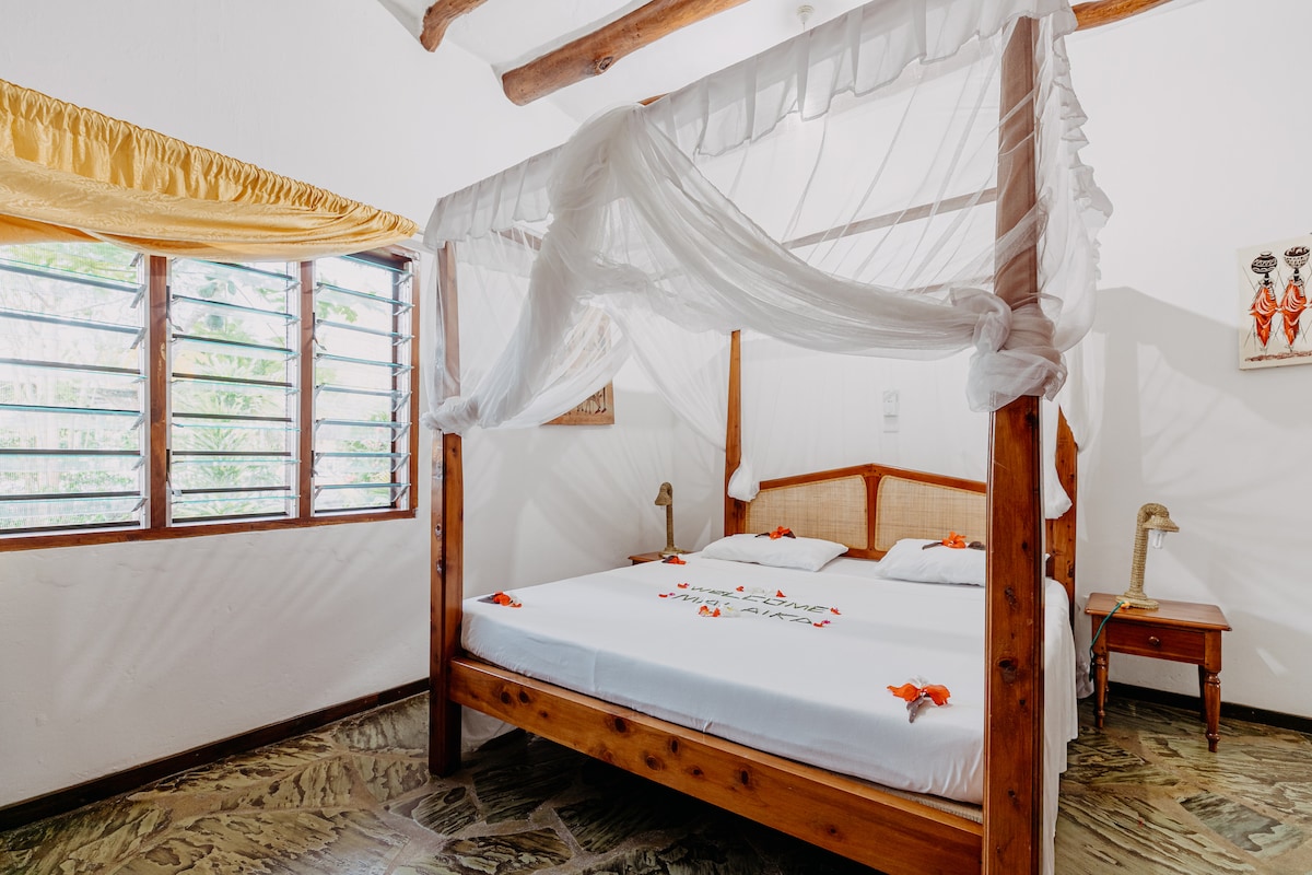 Rumah gaya Swahili tradisional, terletak di tanjung karang menghadap laut, pantai, taman bunga yang indah, akses persendirian ke pantai. Kolam renang baru dipasang, LIHAT PERATURAN PENGINAPAN Villa mempunyai 2 tingkat & pemandangan Lautan Hindi, akses terus persendirian ke pantai, yang terbentang di kedua-dua sisi, di dalam Taman Laut. Termasuk 3 kakitangan, tukang masak, dan perkhidmatan bilik harian, dan tukang kebun. Boleh memuatkan hingga 10 orang. Mudah disesuaikan dan dibuat selesa untuk menjadi hos kumpulan yang lebih kecil, dengan hanya menggunakan bilik tidur tingkat atas.