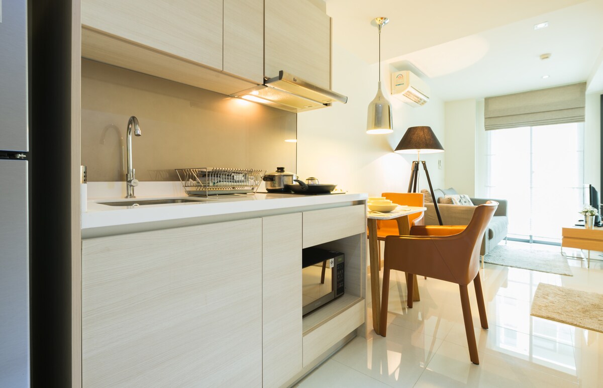 -40 meter persegi satu bilik tidur dengan dapur+ mesin basuh di Bangunan Bangkok Tryp -Tidak sesuai untuk kanak-kanak -Tidak Merokok/ Dilarang Ganja - Berhampiran BTS N4 Sanampao, pintu keluar#3 (7 minit berjalan kaki) -Ruang tamu dengan sofa/bilik mandi peribadi dengan pancuran mandian, pengering rambut, kelengkapan dandanan diri dan tuala -Air-con/Wifi/ TV/Peti deposit keselamatan - Simpanan bagasi percuma/Keselamatan 24 jam - Daftar masuk & daftar keluar mudah/Tempat letak kenderaan percuma -Swimming pool & Fitness *Apartments are on 2-4 floor, corner or middle units (depends on availability)