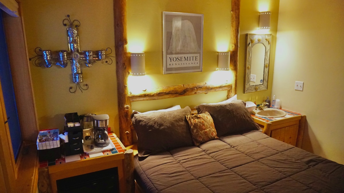 Menginap di taman. Tempahan penggunaan harian tidak diperlukan! Anda telah menemui tempat terdekat dengan semua tarikan utama Yosemite! Langkau perjalanan yang lebih panjang, lalu lintas yang perlahan dan menunggu di pintu masuk Nikmati suite 1 bilik tidur Yosemite West anda dengan katil king, sofa tidur, pendiangan, dapur kecil dan bilik mandi penuh. Rasai kesejukan pagi di pergunungan - berehat di luar di dek anda dan sarapan kami belanja! Anda akan mempunyai pintu masuk persendirian, BBQ dan tempat letak kereta percuma di lokasi. Daftar masuk sendiri, tiada interaksi dengan hos diperlukan!