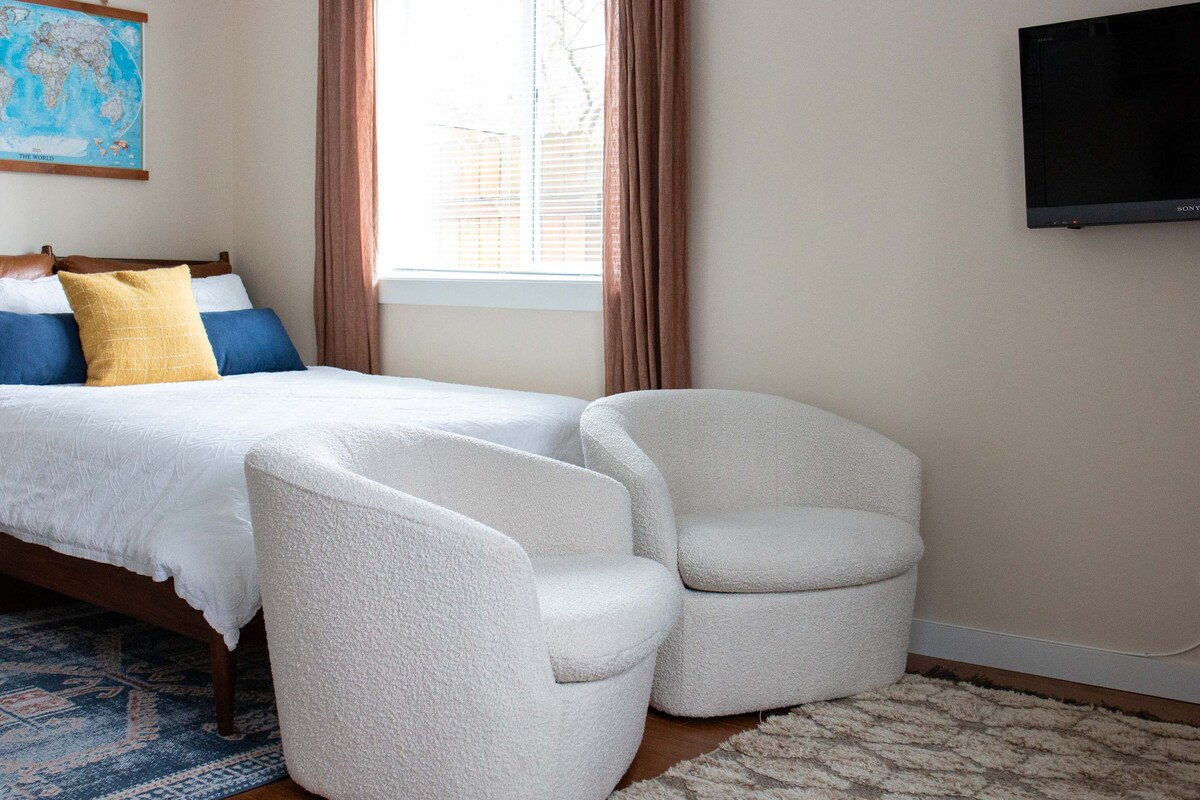 4 blok dari rel ringan! Suite yang benar-benar peribadi, selesa, selesa, terletak di tengah-tengah Ravenna yang popular. Mudah diakses ke UW, Seattle Children 's dan pusat bandar. Juga dalam jarak berjalan kaki ke banyak kedai dan restoran hebat. Boleh memuatkan sehingga 3 orang dengan katil bersaiz queen yang subur dan tarik keluar sofa. Kemudahan termasuk ruang kerja, dapur kecil yang lengkap, TV Pintar, Wi-Fi dan halaman belakang berkongsi dengan lubang api dan BBQ. Tempat letak kereta percuma di jalan dan dobi berkongsi.