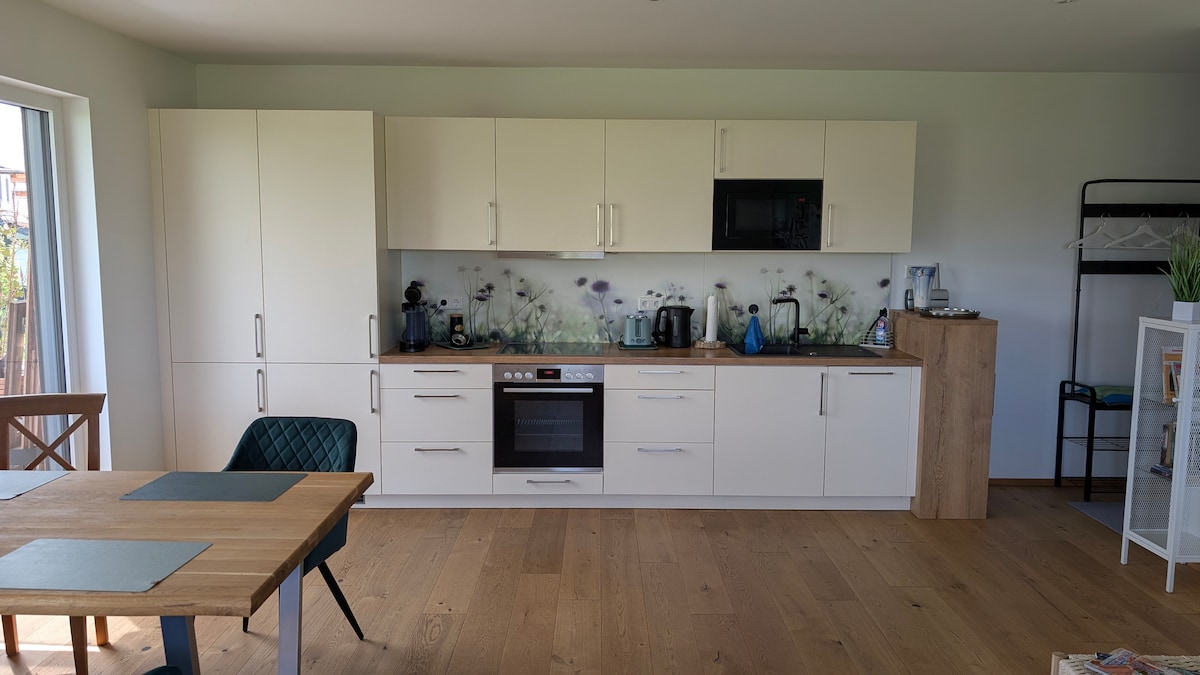Rumah percutian kami adalah rumah arkitek yang luas, diterangi cahaya, berasingan dengan teres bumbung besar dan taman puris di lereng bukit. Di teres atas bumbung terdapat pemandangan panorama Alps dan Zugspitze yang indah. Rumah kami menawarkan dapur ruang terbuka yang serba lengkap. Untuk berehat, terdapat kabin wap inframerah dan tab mandi air panas untuk kegunaan percuma. Rumah ini mesra iklim dengan sistem PV, penyimpanan bateri dan pam haba udara.