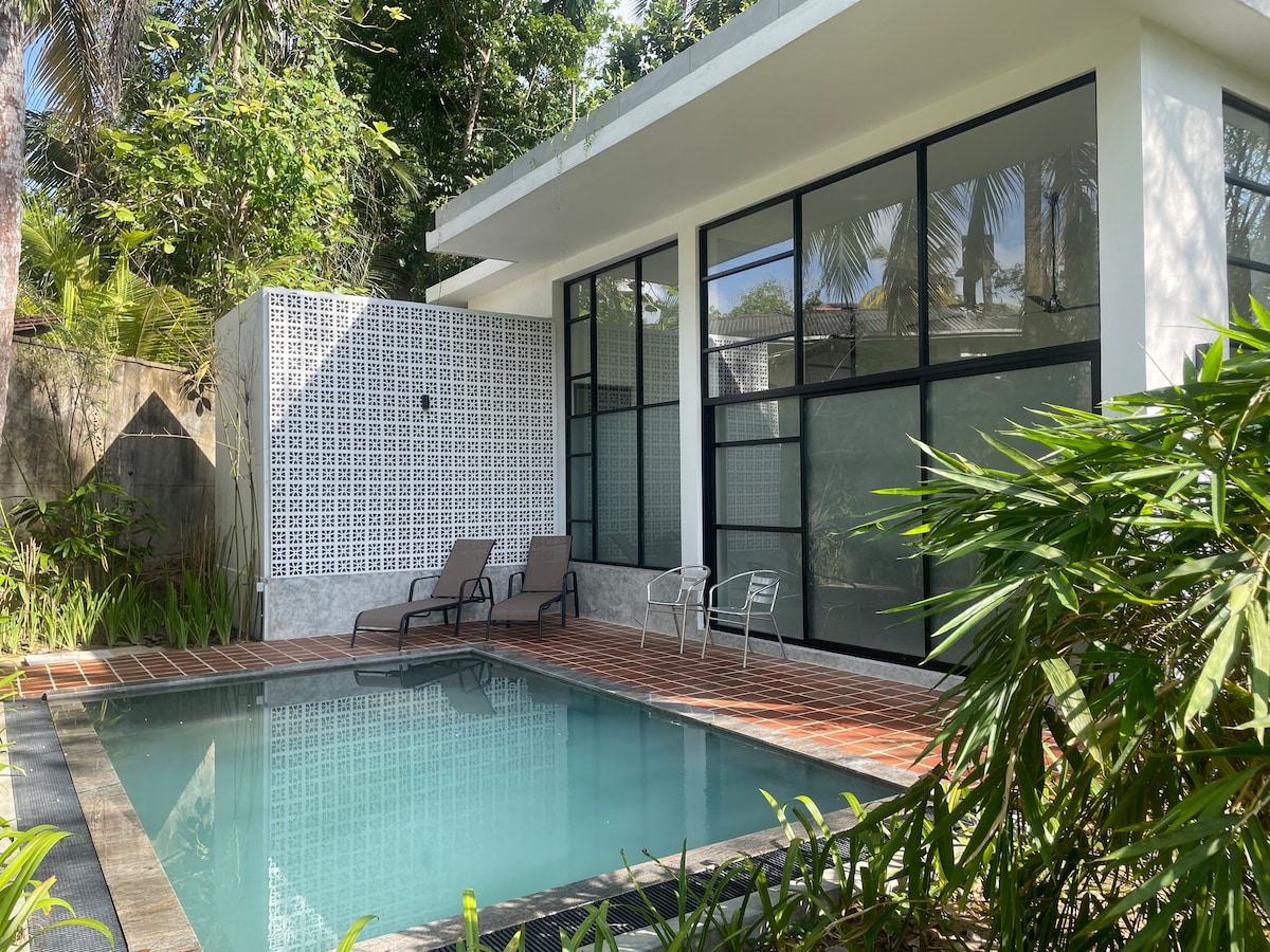 Licuala's Pool Bungalow ialah rumah bergaya studio yang direka untuk kehidupan santai dan ketenangan tropika. Luas dan cerah, rumah ini terletak di tepi kolam dan sawah padi dan bertujuan untuk menyelami alam semula jadi sepenuhnya. Ini adalah salah satu daripada lima rumah persembunyian di estet ini. Setiap rumah tersembunyi oleh flora dan faunanya sendiri. Penginapan kami direka untuk memberikan rasa privasi dan ruang, membawa anda dekat dengan alam semula jadi untuk berehat dan mendapat inspirasi. Pantai Kabalana berjarak 5 minit berjalan kaki.