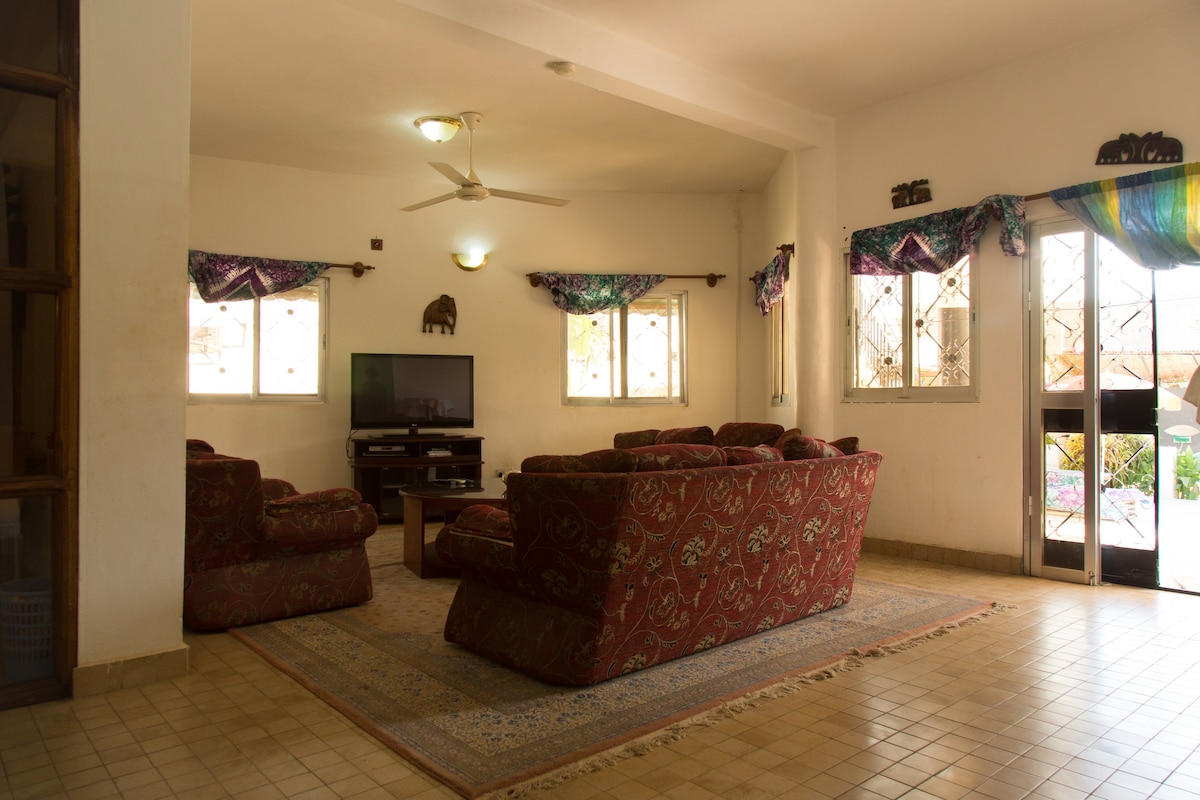 Komuniti percutian kecil kami (termasuk satu dan dua bilik tidur flat taman dan tingkat atas 3 bilik tidur) terletak di pusat bandar berhampiran jalan yang membawa anda terus ke kawasan pantai. Pemandangan seperti Monkey Park, Senegambia dan Kawasan Pelancong Bakau, Taman Buaya Kachikally, Kotu, Pantai Fajara & Bakau boleh diakses dengan mudah dengan kereta dalam masa beberapa minit. Berhampiran dengan lebuh raya dan tempat menarik perniagaan dan kebanyakan kedutaan. Kami menawarkan pengangkutan ulang-alik pantai dengan kos petrol. Pusat membeli-belah dan restoran dalam jarak berjalan kaki.