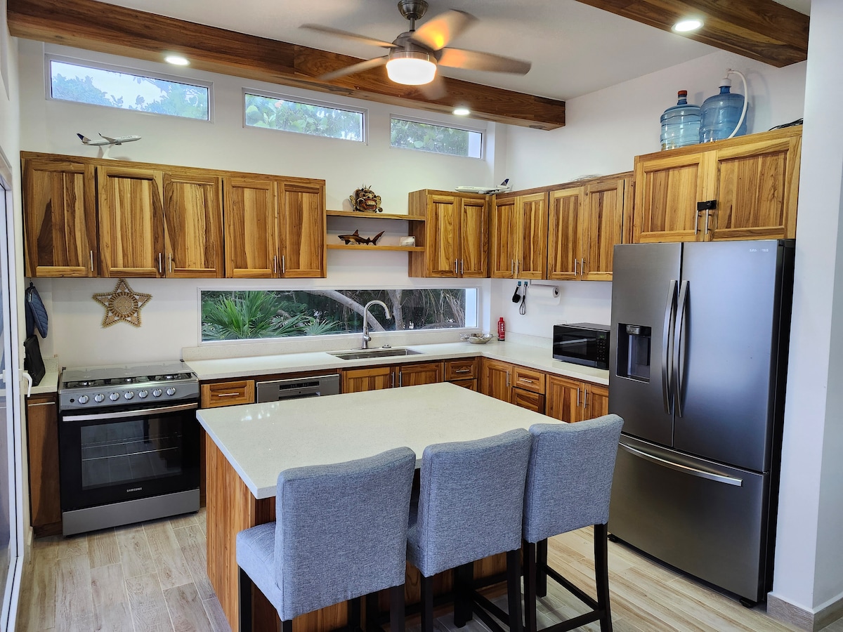 Casa 2 terletak di tingkat atas rumah, menawarkan percutian yang tenang dan peribadi dengan pemandangan yang menakjubkan dan angin yang menyegarkan. Terletak di atas puncak pokok, anda boleh berehat sambil menonton burung macaw, burung kakak tua dan burung madu dari balkoni anda. Terletak hanya 5 minit berjalan kaki dari pusat West End, anda dekat dengan tempat menyelam, bersnorkel, berenang, dan restoran. Selepas seharian pengembaraan, berehat di kolam terjun berkongsi—hanya dikongsi dengan satu apartmen lain—menjadikannya tempat yang tenang dan damai untuk berehat.