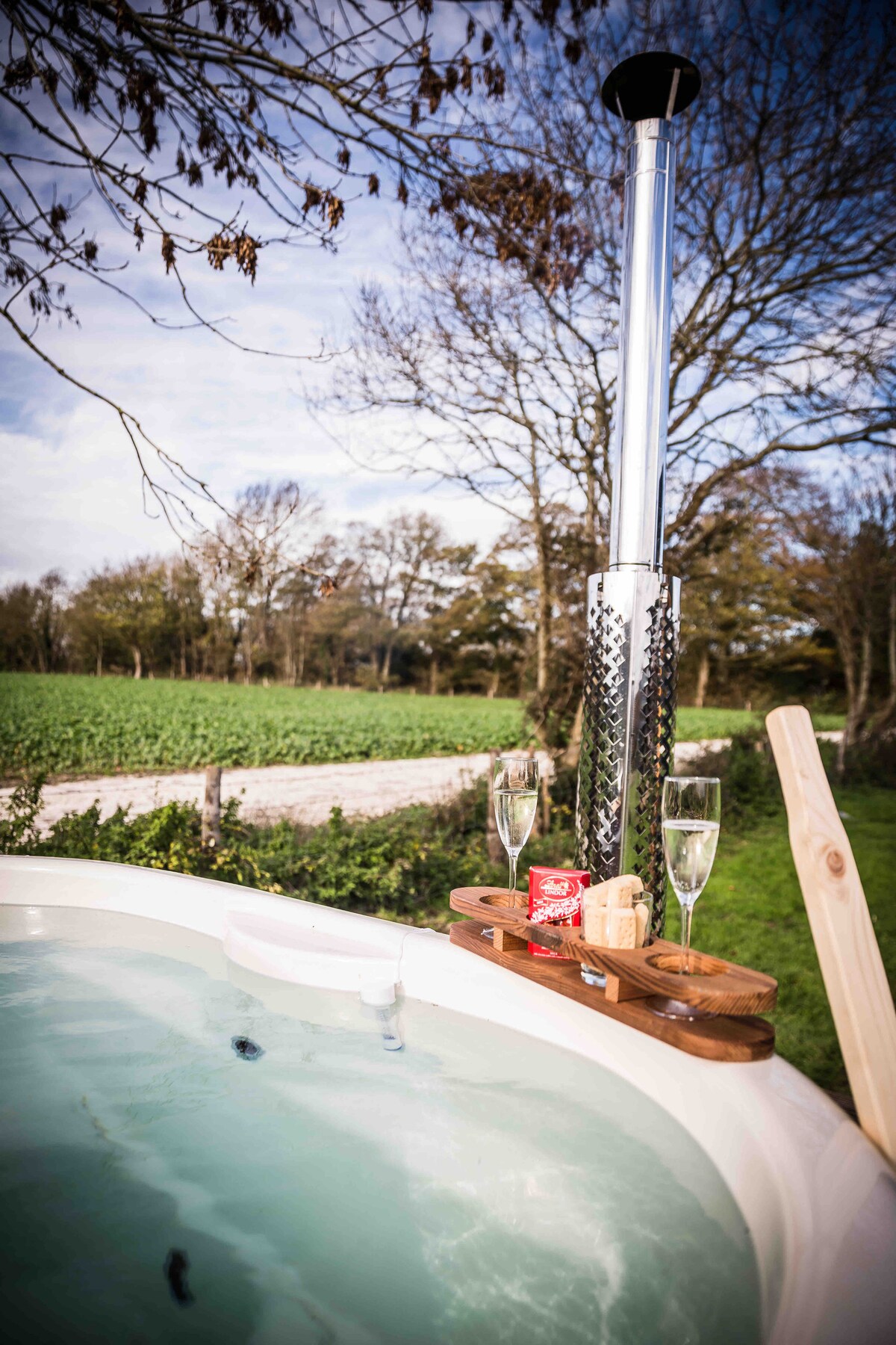 Shepherd 's Hide, Hampshire dengan tab mandi air panas yang dibakar kayu
