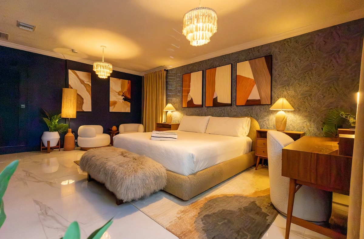 Penginapan yang diubah suai sepenuhnya dengan kipas siling dan lampu LED dengan alat kawalan jauh, bilik mandi moden dengan sinki tersuai dan pancuran mandi walk-in, serta kemudahan mesin basuh dan pengering dalam unit. Bilik tidur ini mempunyai langsir gelap untuk tidur yang tenang, manakala dapur yang lengkap (termasuk ketuhar gelombang mikro) mempunyai semua yang anda perlukan untuk berasa selesa seperti di rumah. Nikmati penginapan yang selesa dan manfaatkan sepenuhnya cuaca hangat yang indah di Miami! 🌴☀️