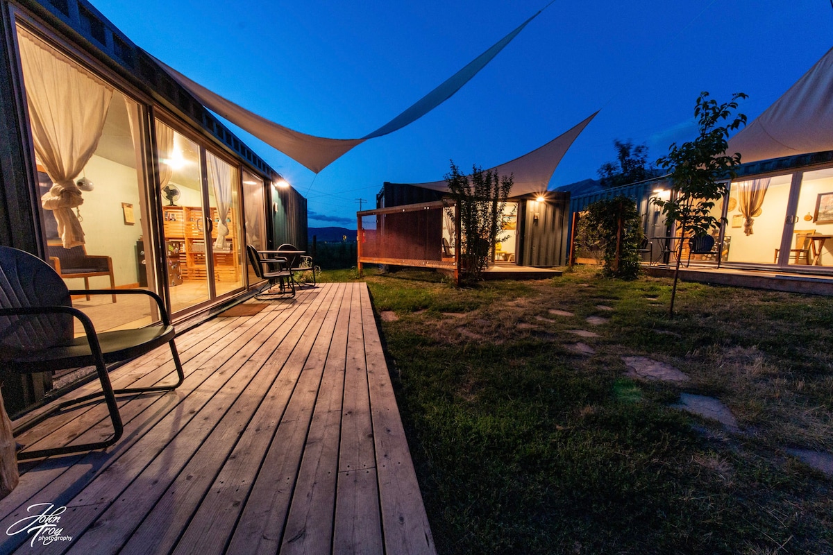 Crash Pad #1. Kami terutamanya merupakan tempat muzik langsung yang menawarkan penginapan desa namun selesa di tengah-tengah Paradise Valley. Lawati laman web Pine Creek Lodge untuk jadual konsert kami. 2 tiket disertakan ke mana-mana konsert dalam penginapan anda. Kontena perkapalan kami yang diubah suai terletak di dalam tempat muzik, dan selesai dengan hiasan dalaman yang selesa dan kemudahan standard. Tiada paip di pad kemalangan anda, suite bilik mandi persendirian terletak kira-kira 50 kaki jauhnya.