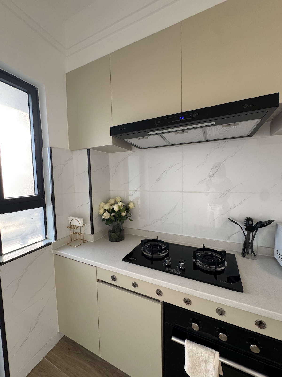 Enjoy hotel-style living in this corner apartment with direct access from the JKIA Expressway; steps from the Lavington business hub, shopping malls, and an in-house coffee shop. Floor-to-ceiling windows frame stunning Ngong Hills views, while the open-plan living and bedrooms create a bright, airy environment. A secure smart lock for a seamless check-in. Perfect for both business & leisure stays. Designed for ease, comfort, and quiet sophistication - enjoy the experience of Orak Hospitality.