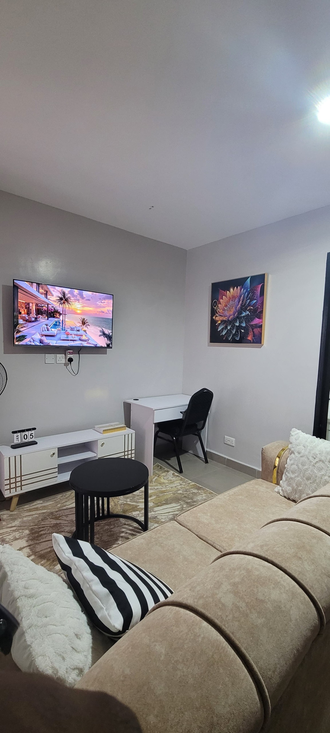 Apartmen 1 Bilik Tidur Moden dengan Pemandangan Bandar yang Menakjubkan di Kilimani Selamat datang ke rumah bergaya anda yang jauh dari rumah di tingkat 16! Apartmen satu bilik tidur yang baru dibina dan dilengkapi dengan perabot yang cantik ini menawarkan suasana yang selesa dan seperti di rumah dengan pemandangan bandar yang menakjubkan. Nikmati malam yang menenangkan di atas tilam yang selesa dengan linen putih bersih, dan bersantai dengan TV Pintar 55” untuk rancangan dan filem kegemaran anda. Mulakan hari anda dengan kopi, teh dan gula percuma, dan segarkan diri dengan