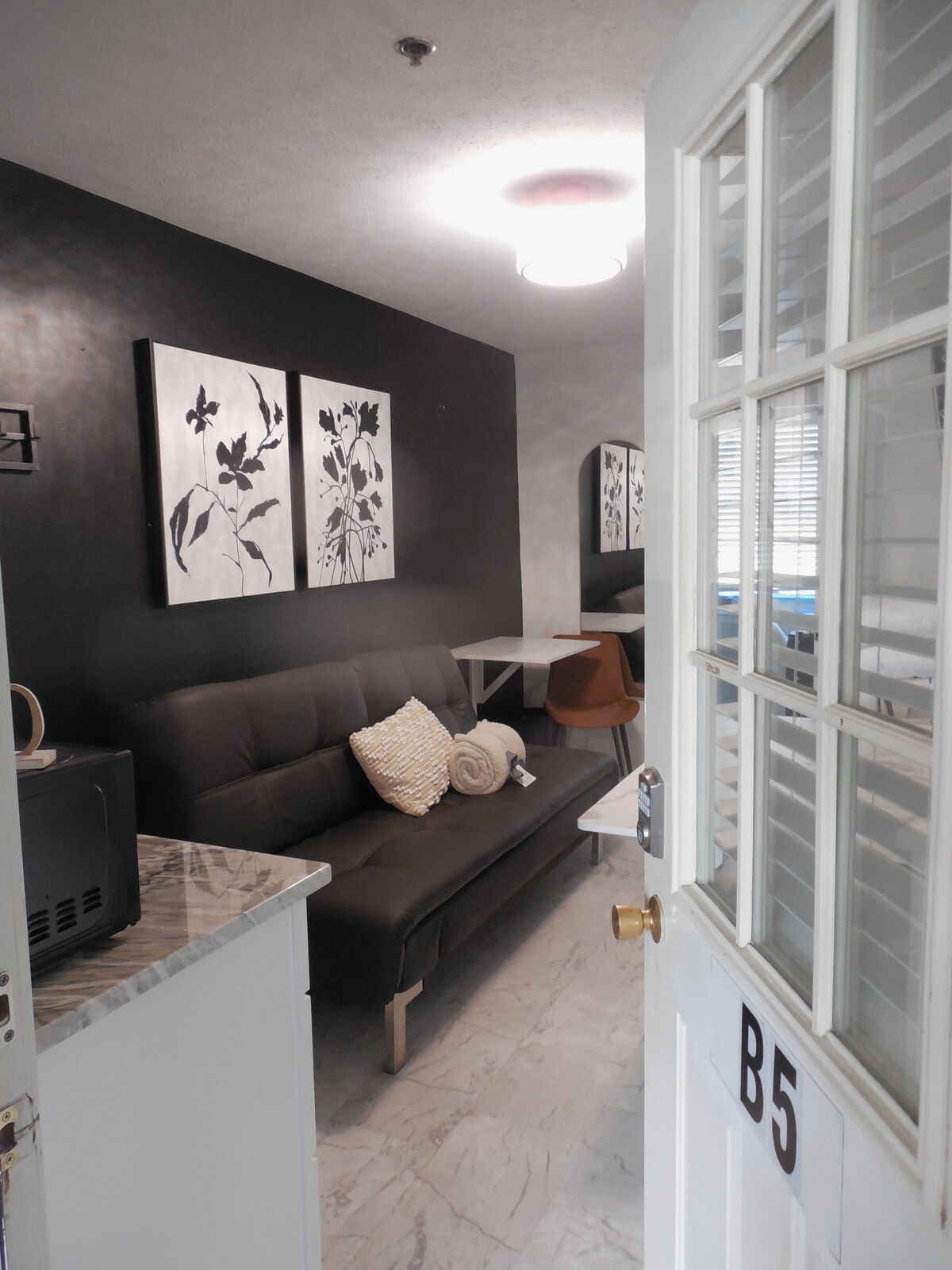 Ruang yang unik dan cekap ini mempunyai semua keperluan asas untuk pengembara yang mementingkan bajet. Direka dengan teliti, ruang selesa kami memaksimumkan keselesaan dan kemudahan dalam jejak yang padat. Disesuaikan untuk pengembara moden, bilik ini mempunyai ruang tidur yang selesa (futon yang berfungsi sebagai katil), dapur kecil yang berfungsi yang dilengkapi dengan Keurig, peti sejuk mini, ketuhar gelombang mikro dan meja kerja yang diperkemaskan. Setiap inci dioptimumkan untuk praktikal, menjadikannya ideal untuk penginapan jangka pendek atau lawatan lanjutan.