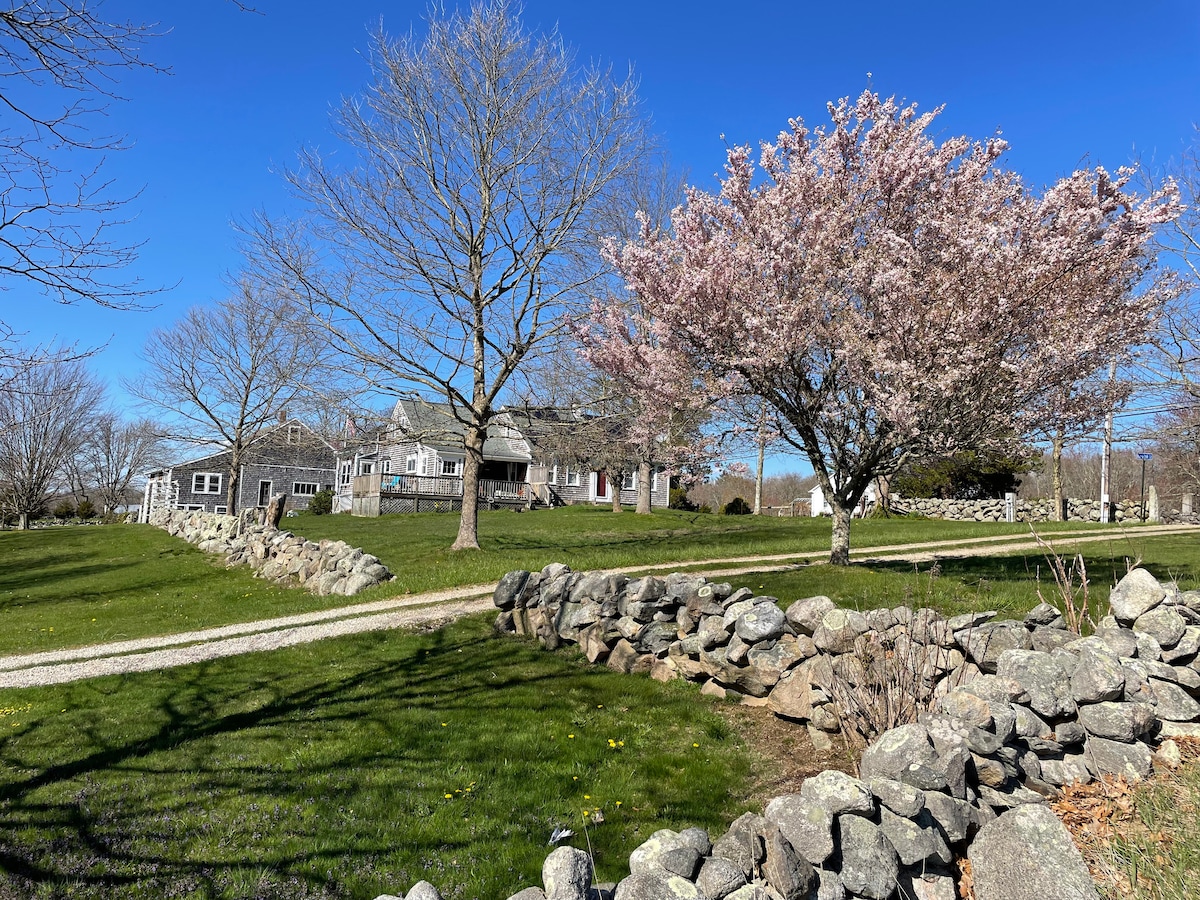 Brithaven Farm is on 28 acres of fields, woods meadows and gardens. We are just 2 miles from East Beach and the Allen's Pond Wildlife Sanctuary. We are completely private from the road and reached by a long laneway through woods which opens up to fields and meadows The rental has 2 decks, one with a large awning with dining table and chairs to lounge and take in the view. There is an open plan living, dining kitchen area with french doors leading to the deck.