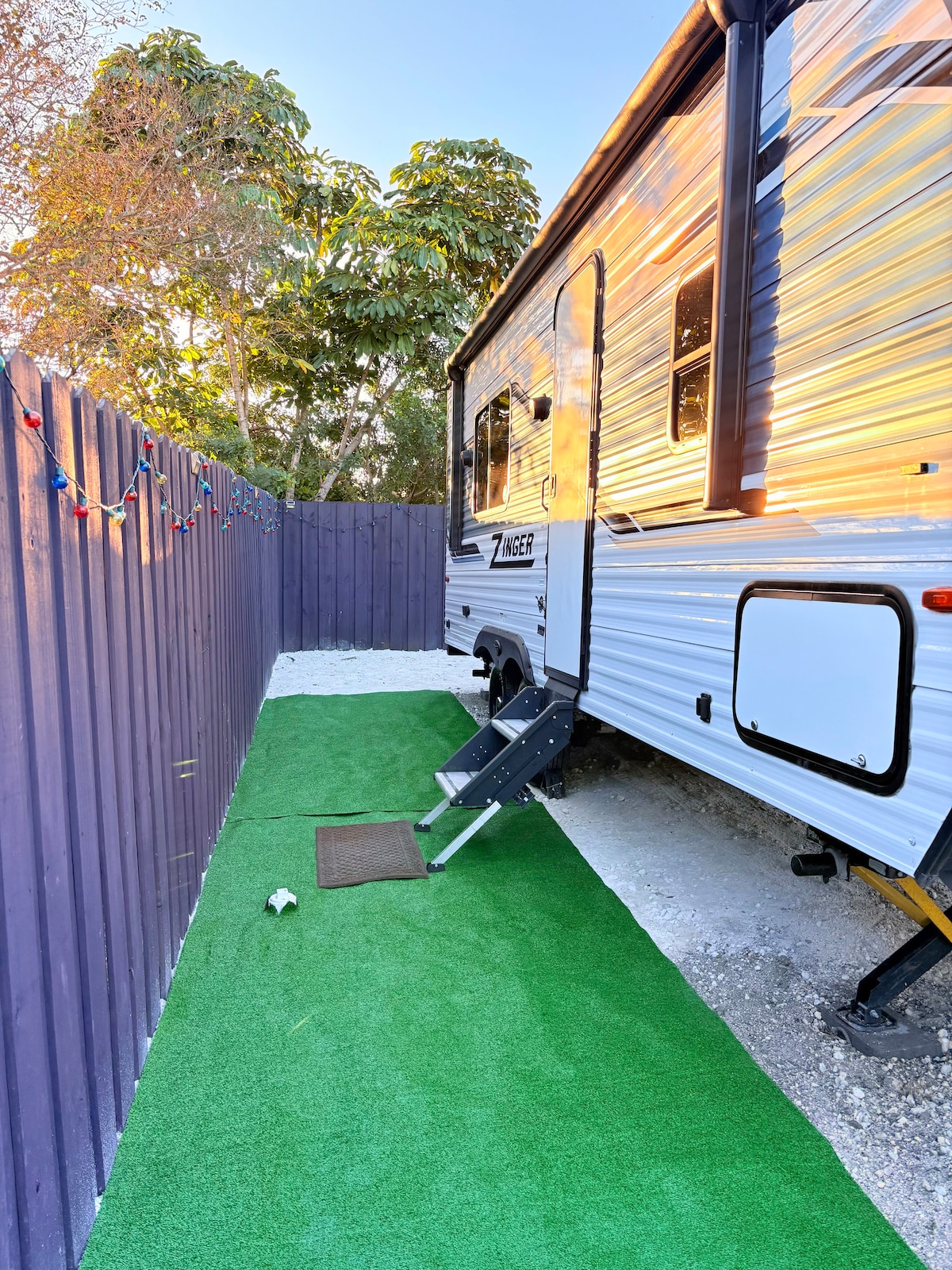 Escape to our fully equipped tiny home nestled among oak trees draped in Spanish moss and surrounded by palm trees. Set on 1.75 fenced acres with a private fishing pond and an in-ground swimming pool. Just minutes from beaches and restaurants, it's the ideal getaway!