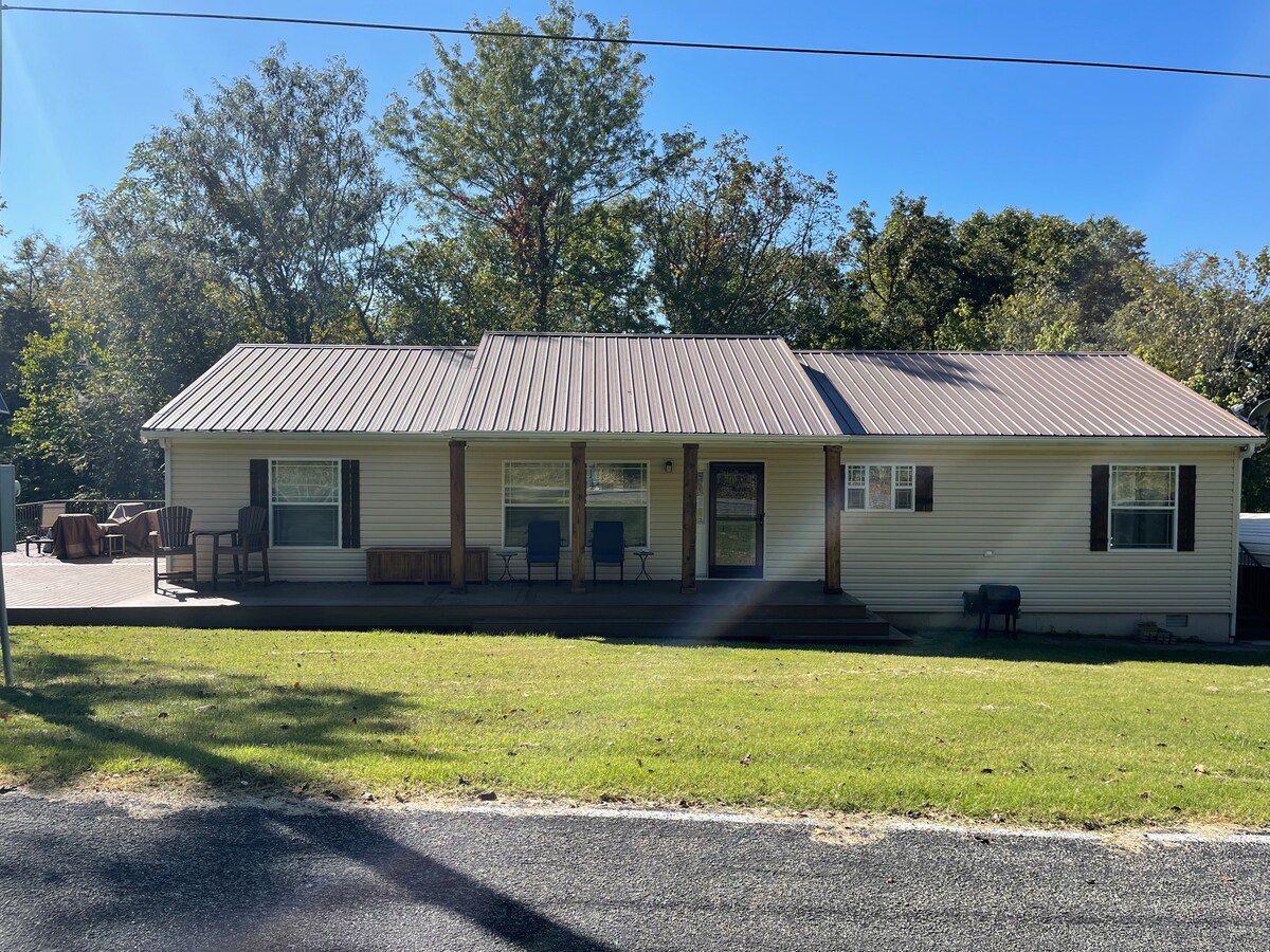 The Nut House sits on a 200 foot bluff overlooking Table Rock Lake. We are part of the Emerald Beach community. The best part of this 3 BR 2 BA home is the 900+ SF deck. There is a charcoal BBQ grill and comfy lounge chairs on the deck for summer, and an easy-to-light fire pit for winter (wood included). Lake access/boat ramp is 1/4 mile down this quiet street. Deer roam the neighborhood and on rare occasions you can spy fox and bald eagles.