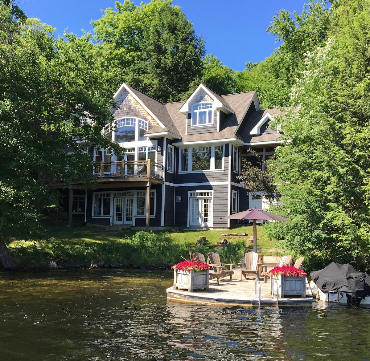 Selamat datang ke Muskokan Mirage. Terletak di atas lot peribadi yang besar yang menghadap Tasik Mirage yang menakjubkan, kotej sepanjang tahun yang diubahsuai ini sesuai untuk percutian keluarga! Terletak hanya lima belas minit memandu dari Huntsville ini adalah tempat yang mesti dikunjungi untuk rakan-rakan dan keluarga yang sedang mencari percutian yang tenang berhampiran dengan kemudahan tempatan. Kotej empat bilik tidur moden ini menawarkan banyak ruang dalaman dan luaran dan dek tertutup dengan pendedahan North West di mana tetamu akan menikmati matahari dari 11 pagi-5 petang yang menawarkan stunni
