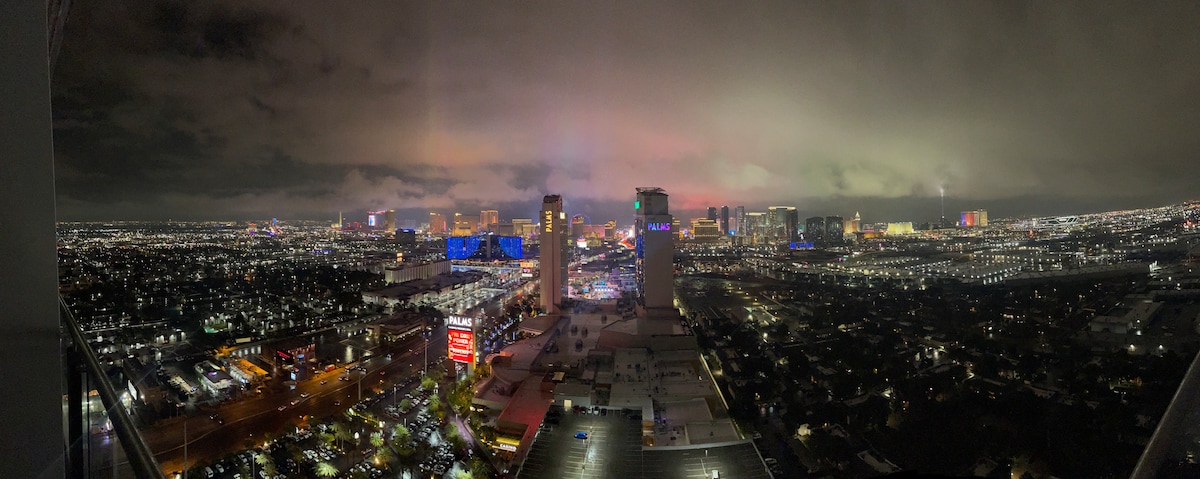 Alami lambang keanggunan di kondominium tingkat 39 ini, yang menampilkan balkoni dengan pemandangan Las Vegas Strip yang menakjubkan. Percutian canggih ini menawarkan ruang tamu yang bersih dan selesa dengan perabot moden. Balkoni yang luas menjemput anda untuk berehat dan berendam dalam lampu bandar yang meriah. Sesuai untuk mereka yang mencari gaya hidup mewah, kondominium ini menggabungkan keselesaan dan gaya, mewujudkan pengalaman hidup yang tiada tandingan di tengah-tengah Las Vegas.