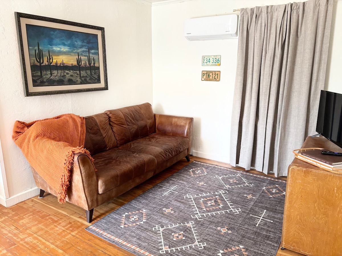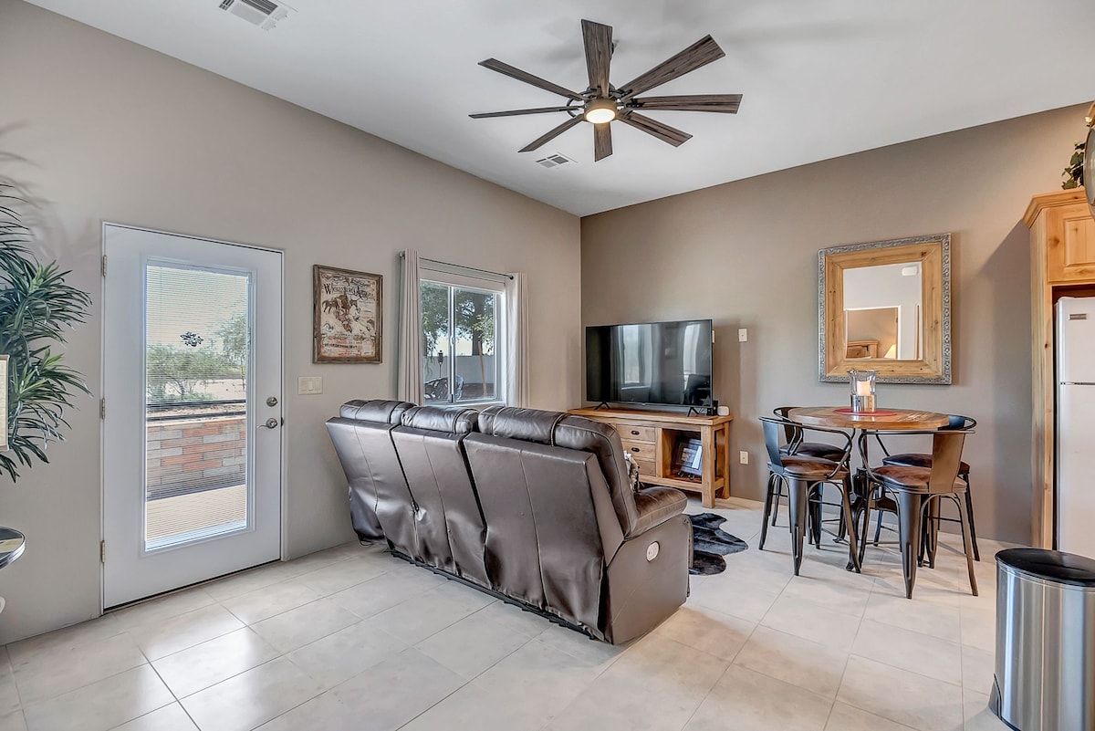 Guest House with a private entrance and yard with a relaxing view. Secluded neighborhood near Rancho Rio, Simpson Ranch and Downtown Roping Arenas. Plenty of space for parking and horse trailers. Trails are located right nearby and minutes from Downtown Wickenburg. The only stairs are on the outside leading to the guest home. There is a couch in the living room and if needed we allow for one extra guest at $25.00 per night.