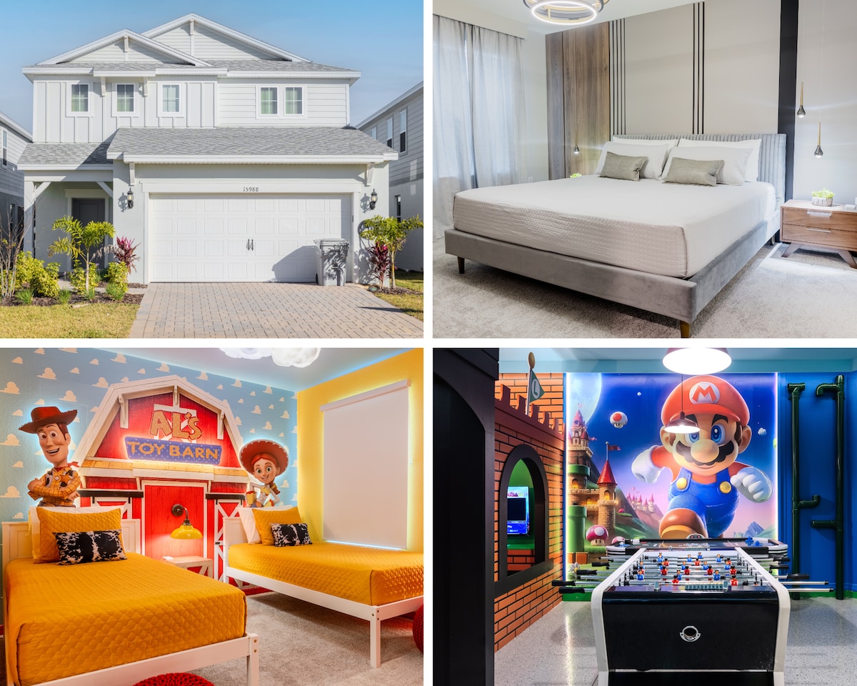 Hanya 4 batu dari Disney, rumah bandar mewah kami adalah percutian keluarga anda yang sempurna! Dengan kolam percikan peribadi, TV Pintar 65”baharu, dan peralatan mesra keluarga (kereta sorong bayi, pack n’ play, kerusi tinggi), anda akan mempunyai semua yang diperlukan untuk penginapan yang riang. Terletak di seberang kelab Windsor Hills Resort, nikmati faedah resort seperti kolam renang, pad percikan, pusat kecergasan dan teater! Memuatkan 8 orang dengan selesa dengan 3 bilik tidur di dalam suite, termasuk bilik kanak-kanak pantai Disney bertema. Keseronokan, keselesaan dan kemudahan menanti anda!