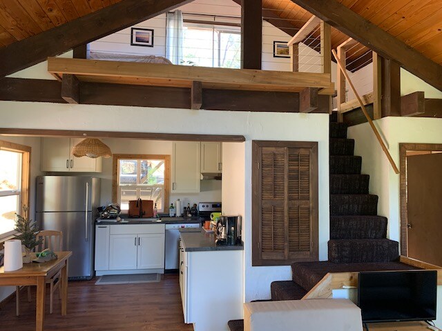 ORANG DEWASA HANYA JIKA TARIKH YANG ANDA INGINKAN TIDAK TERSEDIA, SILA PERTIMBANGKAN UNTUK MENGINAP DI PENGALAMAN MENAKJUBKAN LAIN DI PENGINAPAN KAMI. "An Architects Studio" Rumah Pokok yang selesa ini sangat indah. Cocooned oleh Redwoods, Sitka Spruce dan Huckleberries. Tangga membawa anda ke loteng tidur yang selesa, di mana anda boleh merenung bintang-bintang melalui dua skylight besar. Hanya menuruni tangga merentasi RUANG TAMU LUAR, masuk ke "Shower Grotto", di dalam Tumpan Redwood Pertumbuhan Lama dengan Pancuran Hujan.