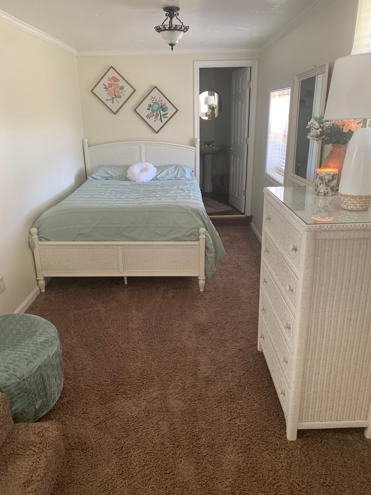 Relax in a quiet, curated, pet-friendly art exhibit. Live with paintings & sculptures that are for sale. This garden apartment is tucked into a hillside above a creek, along the Jewel Vinsota Sculpture Trail. Your host/gallery curators live upstairs. The “Artist’s Guesthouse” is next door. The private entrance is down a stone-stepped path. Perfect for 2 w/ the queen bed but room for 3 w/ the living room futon. Fully equipped kitchen. Private charcoal grill and fire pit next to the creek.
