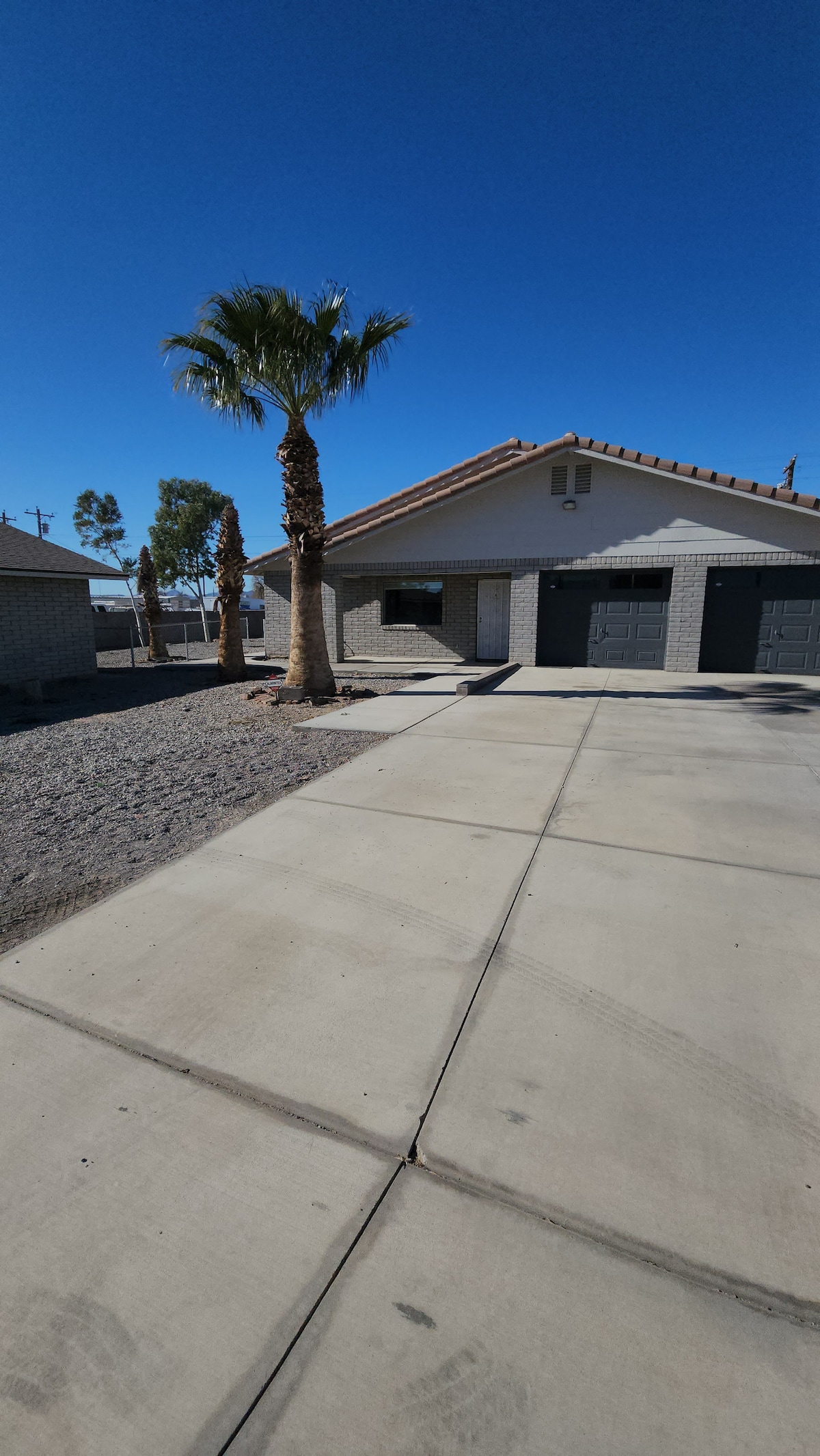 The house has everything you could need for a weekend at the river. Enjoy morning coffee(provided). while seated under the large patio cover with fans BBQ, table (see pics). It will feel more like a home than an Airbnb. Near the water &, close to 3 launch ramps, and off-roading trails. Large driveway for an RV or boat. The house stays extra cool with A/C, solar screens, & blackout blinds. Your pet will ❤️ the doggy door. There is no garage access or parking in the backyard.