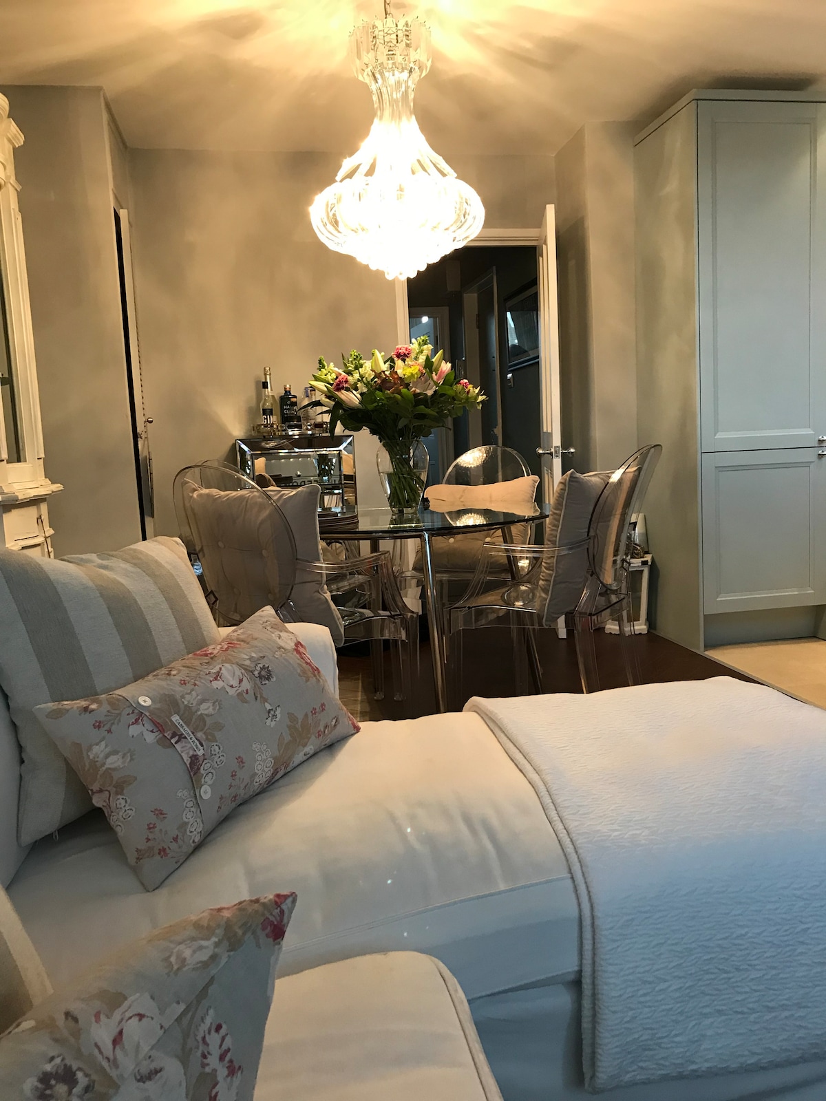 Apartmen Chelsea 1 bilik tidur yang elegan dengan lantai kayu oak, hiasan dalaman yang menenangkan, dapur penuh, dan akses ke taman umum yang tenang. Hanya 2 minit dari King's Road dan berjalan kaki singkat ke Saatchi Gallery, muzium, dan Chelsea Physic Garden. Tenang dan bergaya dengan kaca sekunder ke bilik tidur dan ruang istirehat untuk penginapan yang tenang Wi-Fi super laju, TV Pintar dan sambungan pengangkutan yang hebat melalui stesen South Kensington & Sloane Square Sila tanggalkan kasut di dalam rumah Pangkalan London yang sesuai untuk pasangan atau pengembara solo.