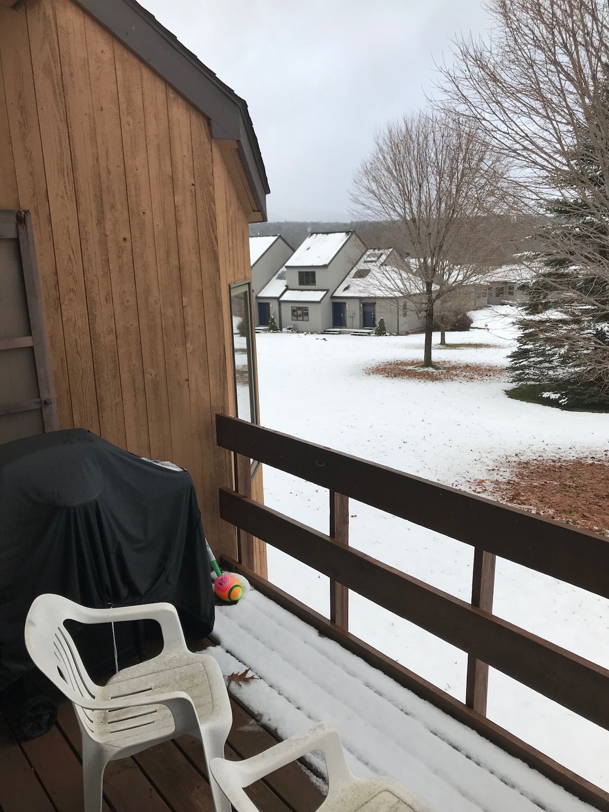 1 bilik tidur di tepi cerun yang muat 4 orang! Nikmati hiking dalam masa 5 minit memandu atau hanya berjalan kaki ke gunung dari anjung anda. Akses kepada kolam renang komuniti bermusim dengan pemandangan gunung yang luar biasa! Lokasi yang tiada tandingan di Hunter Mountain, pemanduan singkat ke bandar kampung Tannersville yang indah, Kaaterskill Falls yang megah dengan denai hiking, dan memancing yang terkenal! Dapur/bilik mandi yang lengkap, sistem hiburan penuh dengan Netflix dan semua perkhidmatan penstriman kegemaran anda.