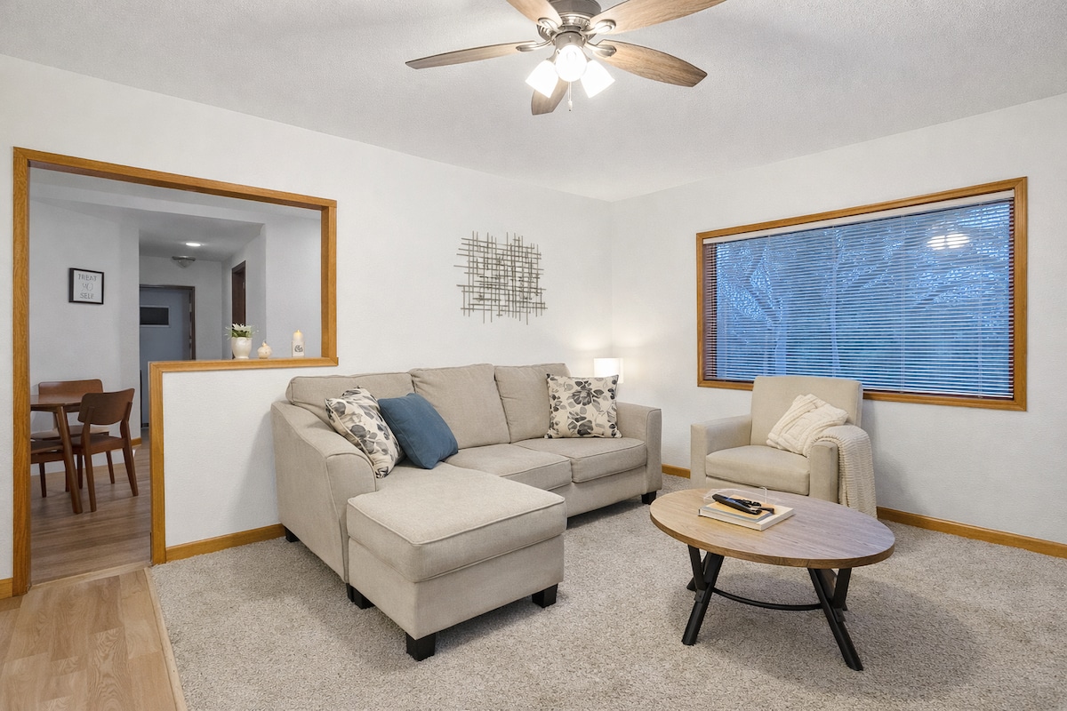 Selamat datang ke Airbnb kami yang menawan di tengah-tengah Urbandale Iowa Dupleks 2 bilik tidur, 2 bilik air kami menawarkan percutian yang selesa dan bergaya untuk penginapan anda. Ruang tamu berkonsep terbuka sesuai untuk berehat selepas seharian bekerja keras, dan dapur yang serba lengkap menyediakan semua yang anda perlukan untuk menyediakan semua yang anda perlukan untuk menyediakan makanan yang lazat. Perhatian: Airbnb ini adalah dupleks. Pemilik tinggal di seberang sana. Walau bagaimanapun, anda akan mempunyai pintu masuk persendirian anda sendiri, satu-satunya perkara yang dikongsi ialah laluan masuk.