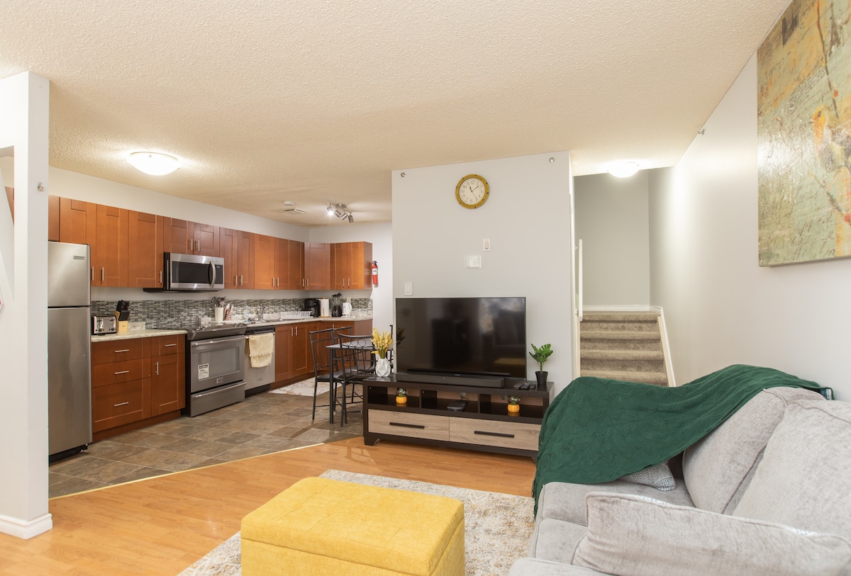 This basement suite is made perfect for you and your loved ones. A good size living area and a spacious bedroom will make you feel at home. This suite is close to many amenities including shops, restaurants, a mall and a major bus stop. There is separate access for you and a smart lock door to allow ease of movement. You will be provided with a passcode when your reservation is confirmed. We will do our best to make your stay a memorable one. Welcome!
