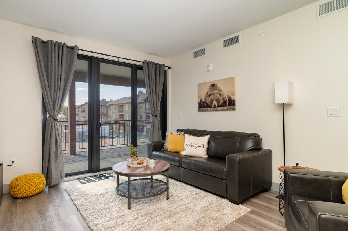 Dua bilik tidur, dua bilik mandi, kondominium tingkat atas dengan tiga balkoni persendirian. Dapur kami yang serba lengkap dilengkapi dengan semua kemudahan yang anda perlukan untuk menyediakan makanan kegemaran anda, dan kami menyediakan kelengkapan dandanan diri percuma untuk kemudahan anda. 15 minit berjalan kaki ke bar dan restoran jalan utama dan di laluan ulang-alik ski percuma ke Mountain atau Main Street. Manfaatkan tempat letak kereta percuma kami di hadapan bangunan dan berehat selepas hari yang panjang di lereng atau denai di tab mandi air panas luar komuniti.