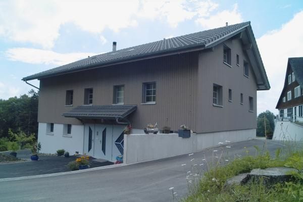 Kami menawarkan studio 25m2 (pancuran mandi/tandas) kami dengan pintu masuk berasingan di rumah keluarga tunggal moden. termasuk: TV, Wifi, tempat letak kereta 5 minit dari stasiun kereta api dengan setengah jam ke Winterthur/Zurich atau Frauenfeld tiada dapur