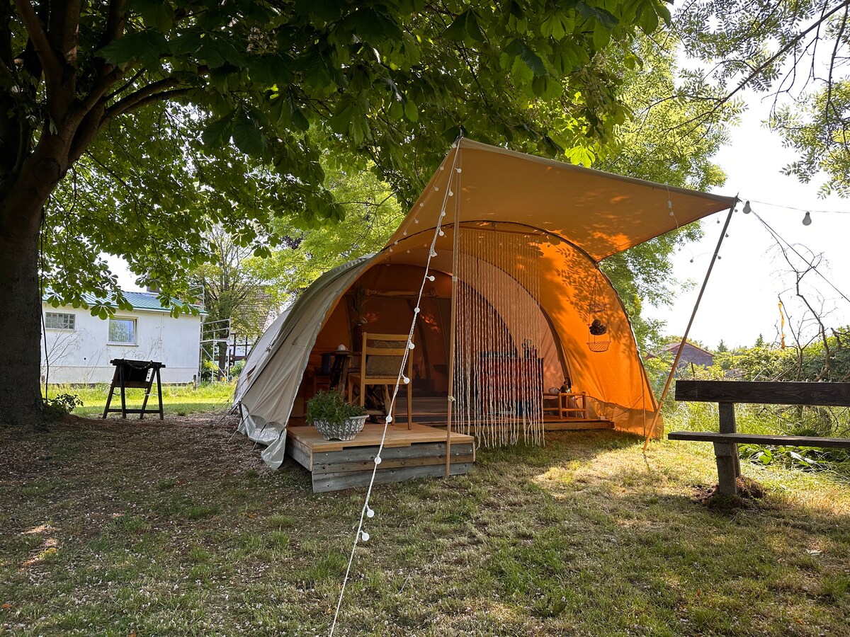 Comfortable glamping tent