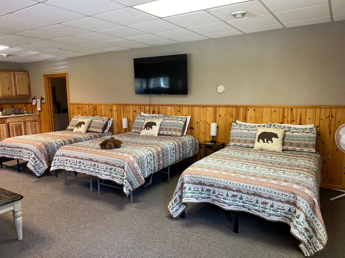 Mari kongsi keindahan alam semula jadi dengan kami. Suite 600 kaki persegi dengan dapur kecil. Pintu masuk persendirian. Suite termasuk banyak kemudahan rumah: ketuhar gelombang mikro, penggoreng udara, wajan elektrik, plat panas, bilik mandi dengan pancuran mandi, dan gril gas komuniti. Terletak dalam jarak berjalan kaki ke semua yang ditawarkan oleh Longville. Akses bot awam ke Girl/Woman Lake kurang daripada suku batu jauhnya. Ruang untuk tempat letak bot/ATV/Snowmobile dan akses kepada elektrik untuk mengecas bateri. Denai ATV dan kereta salji berhampiran.