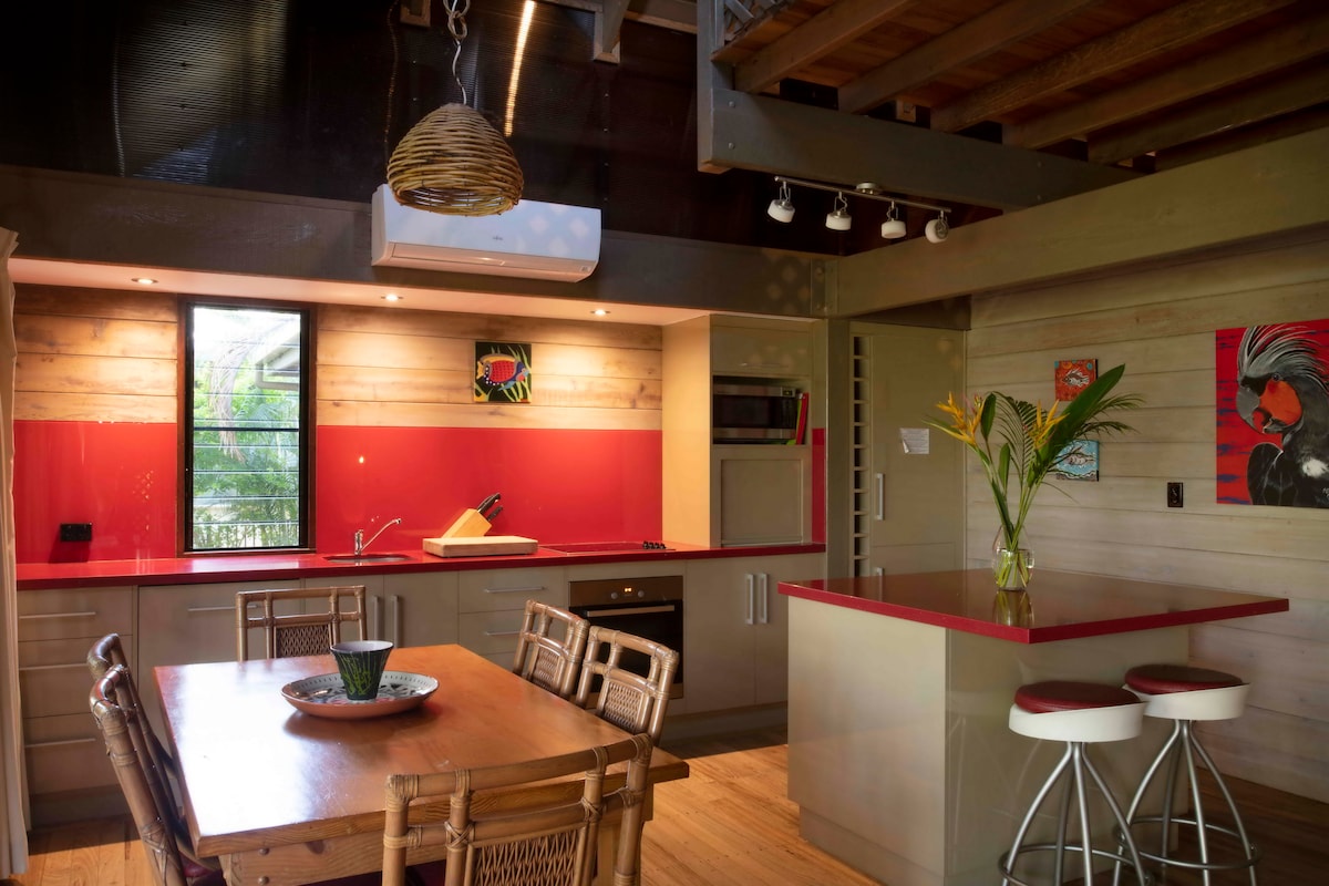 Terletak di bandar pantai kecil yang mengantuk pada masa itu terlupa. Di mana tapak tangan purba menaungi laluan anda dan makhluk prasejarah masih berkeliaran di tanah ini. Isnin yang perlahan terletak di pinggir hutan yang dilindungi (koridor kasuari) hanya berjalan-jalan dari pantai. Sebuah pondok pantai klasik Australia yang moden, rumah ini direka untuk kawasan tropika Queensland. Terdapat dua pavilion, satu untuk hidup dan satu lagi untuk tidur, semuanya dengan pintu gelangsar kaca besar yang terbuka untuk membolehkan alam sekitar masuk.