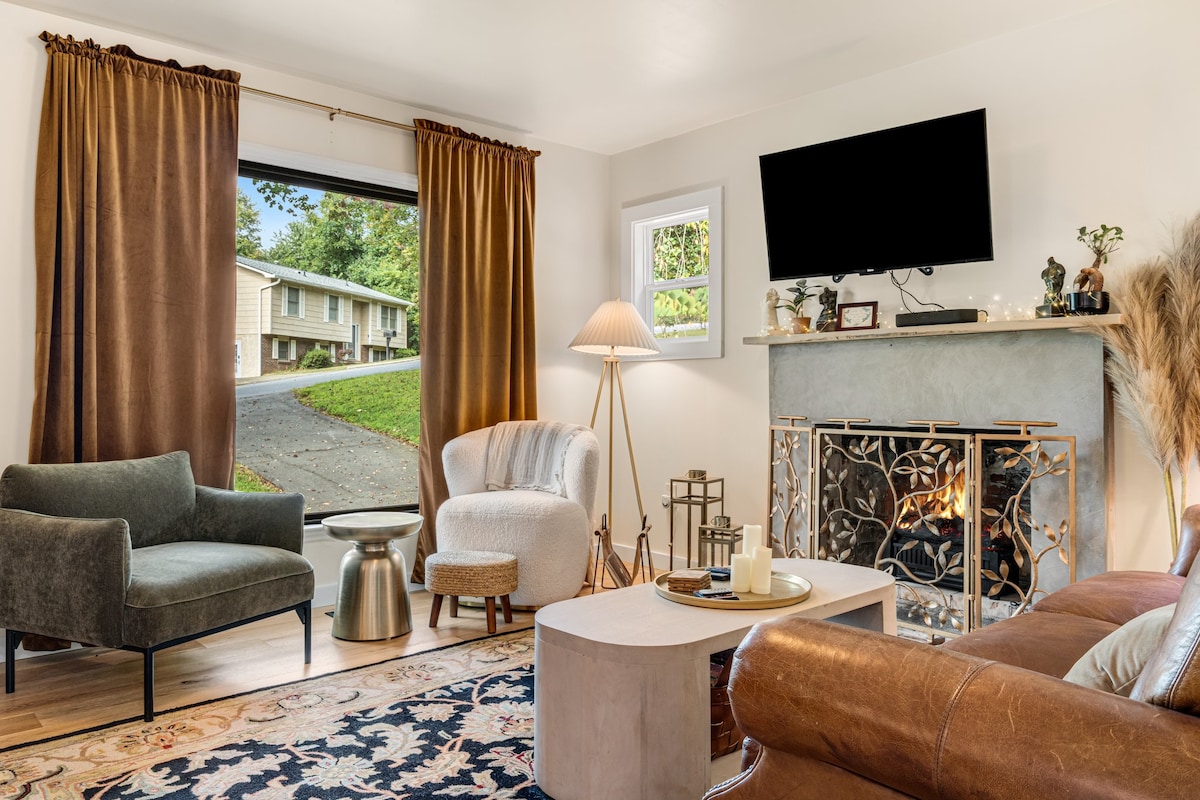 Relax and unwind with the whole family or friends in our 4 Bedroom and 3 Full Bath modern home nestled in the heart of the Blue Ridge Mountains. Sit out on the spacious deck to watch the sunset and view the gorgeous mountains, or sit by the fire pit and enjoy the sounds of the birds and sometimes turkeys. Within walking distance of Reynolds Village, which is filled with delicious restaurants and unique shops, while just minutes drive to downtown Asheville (6 minutes).