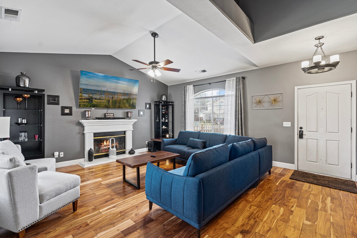 Rumah 3 katil/2 bilik mandi yang cantik dan baru dikemas kini di North Fresno dengan bilik permainan, kolam renang, BBQ dan kawasan permainan! Termasuk 3 garaj kereta! Sesuai dengan 10 orang. Termasuk 1 katil king, 2 katil queen, 2 sofa dan 1 tilam angin saiz queen Bilik permainan termasuk meja foosball, meja hoki udara, dan pelbagai permainan mesra keluarga. Halaman belakang yang cantik dengan kolam renang, barbeku, perabot luar yang selesa, dan kawasan permainan untuk kanak-kanak dengan buaian! Sesuai untuk profesional perniagaan, keluarga besar, atau kumpulan pengembara.