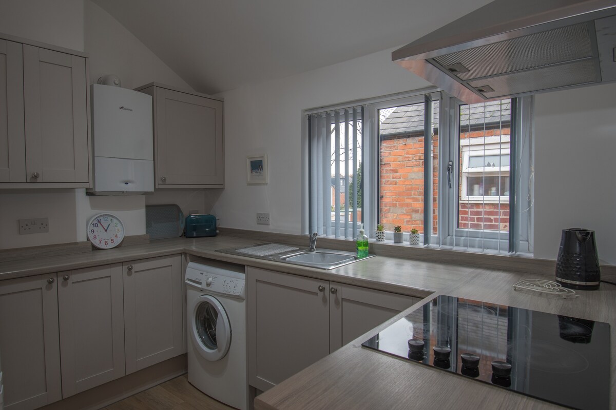 Apartmen baru yang cantik, bersih & luas terletak di lokasi yang ideal. Sesuai untuk pasangan yang melawat Cadbury World & tapak tempatan lain, profesional muda berulang-alik ke pusat bandar atau saudara-mara pelajar yang belajar di Uni of Birmingham. Ciri-ciri: - Dapur/ruang tamu yang luas - Estetik bergaya - Bilik tidur double - Ruang letak kereta khusus betul-betul di bawah flat di tempat letak kereta persendirian & terang - 10 minit berjalan kaki ke stesen kereta api - 5 min memandu dari Uni of Bham - 4 min memandu ke Cadbury World