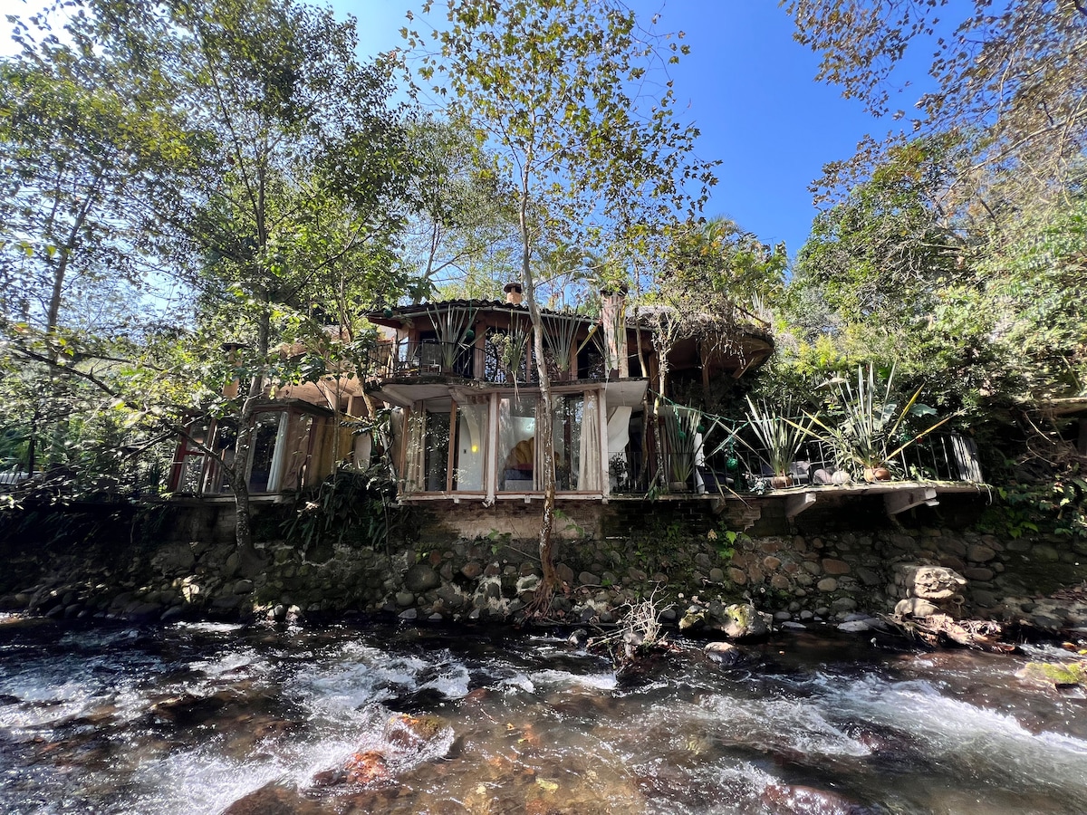 Rumah di tebing Sungai Pixquiac di La Pitaya, Mpio. Dari Mariano Escobedo di Zona Briones, antara Xalapa dan Coatepec. Berdekatan anda akan menemui denai, sungai, laluan batu yang ideal untuk berjalan kaki atau berbasikal, restoran luar biasa yang dibingkai daripada sifat unik Mesofilo Bosque Mexico. Kami terletak di Kepulauan Hutan, tapak yang bernilai ekologi yang hebat. Jiran-jirannya adalah warga tempatan dan asing, pencinta ketenangan dan alam semula jadi.